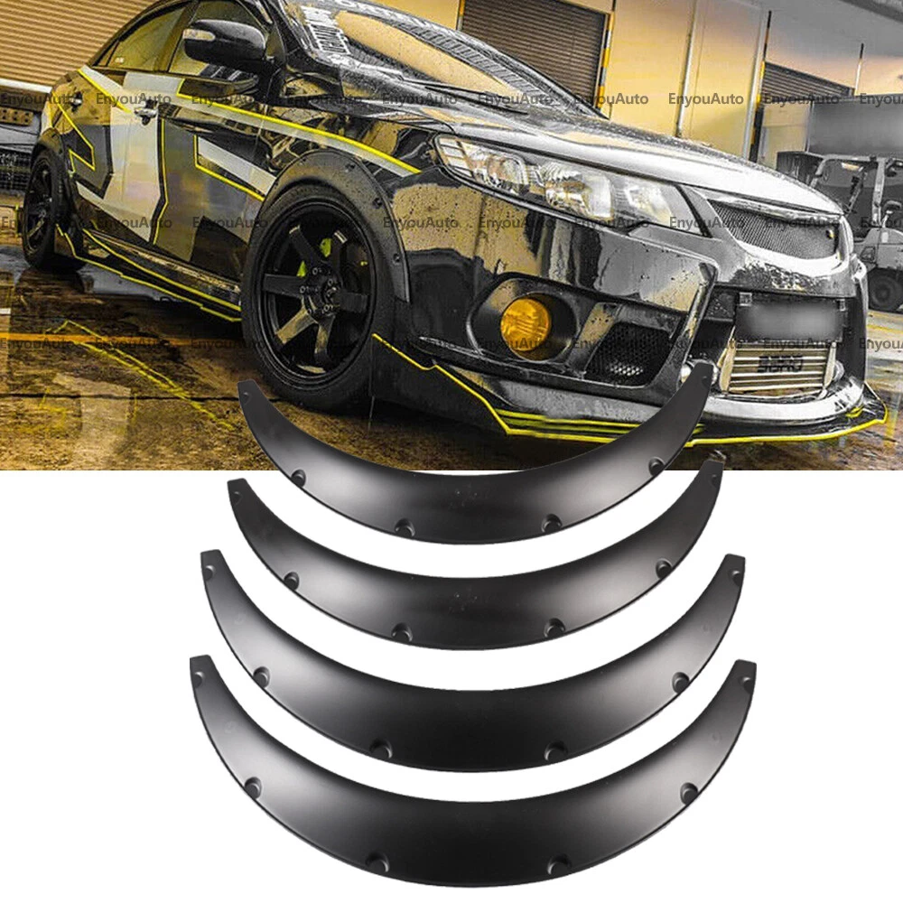Universal Wheel Fender Flares (Please measure fender size before purchase to avoid inappropriate size) This is a Universal product. When it is installed on some models, it may required you use a little force with your hand to bend the wheel brows to fit the wheel arches' radian. The rear doors of some models are integrated, and the fender needs to be cut to a suitable size and then installed on the rear door Suitable vehicle type: Fits for car universal: Honda,Toyota,Mazda,Subaru, Volkswagen,Acura,mitsubishi,Cadillac,lexus,Audi,BMW,Mercedes Benz,Ford,VOLVO,Hyundai,Nissan,Infiniti,Buick,Chevrolet,Kia,Dodge (You can contact us if you have any concerns). Feature: -Smooth and precise edge cutting finish. -Additional Coverage for Larger Tire and Wheel Packages -Improve Appearance and Styling Dramatically -Protects wheel from mud, scratches, sand and other outer damage. -Made of high quality PP plastic, flexible and resistant to corrosion, harder and more durable. -Easy to install & Universal Fitment (Please measure fender size before purchase to avoid inappropriate size) Specification: Size:Length 32 inches Width 3.1 inches (Please measure fender size before purchase to avoid inappropriate size) Type:Universal Wheel Fender Flares Installation: riveted / bolted Placement on Vehicle: Left, Right, Front, Rear Material:PP Color:Black Package Included: 4 x Fender Flares (with 24pcs screws) How to select and install 1. Firstly, determine the diameter of the wheel eyebrow of the original car, then select the appropriate wheel eyebrow size. 2. After receiving the goods, Place the wheel eyebrow where it will be mounted, and there are 6 screws on the wheel eyebrow to determine the hole position. 3. Punch holes in the original vehicle and the wheel eyebrow and fix with screws. 4. If you want to change the color, you can do it by yourself. Delivery details/Shipping and handing: 1. We will ship your order within 3 working days 2. If you didn't receive the item after 7 days, Please contact us, we'll investigate and solve the delivery problem. If you are satisfied with our service, please leave 5 Stars Rating Thanks! Terms of sales: 1. Please contact us before leaving a Negative feedback if you are not satisfied our service or products. Good communication is helpful for both of us to resolve any problems and issues. We are promising to try our best to provide the best service and 100% satisfaction for valuable buyer like you 2. All of the items are new. If it is not in new conditions, refund is offered. Otherwise, replacement can be offered for defective product. We will exchange or give the seller credit to buyer. 3. Customers are responsible for return shipment fee except for wrong shipment or defective products. About us: If you have any questions, please feel free to email our service specialists 24 Hours a Day, 7 Days a Week, and we will reply you ASAP. If no response within 24 Hours, please check the spam of mail box or kindly re-send it to us. We greatly appreciate your POSITIVE feedback. Please do NOT leave negative feedback without any contact. If you haven't received item in 30 days, please contact us and We will try our best to solve your problem ! We are the professional car decoration dealer, if you would like to make your car a shinny look, please contact us !!!