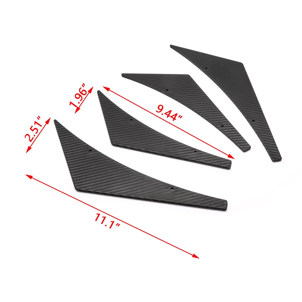 Description This listing is for two pairs of 100% brand new carbon fiber front bumper canards splitters. This Trim is made with high quality ABS plastic with carbon fiber pattern. Give your vehicle a nice aggressive and affordable sporty look by adding this front bumper canard. Feature The car spoiler can reduce air resistance and air noise, and improve the stability of the vehicle during fast driving. As the exterior decoration of the car, improve the appearance of the car. Installation method 1. Double-sided tape installation (please keep the car surface dry and clean before installation) Packing 4 pcs Front Bumper Spoilers Set. On Aug 8, 2024 at 08:28:53 PDT, seller added the following information: On Sep 13, 2024 at 13:54:46 PDT, seller added the following information: On Sep 25, 2024 at 20:01:07 PDT, seller added the following information: On Sep 25, 2024 at 21:13:17 PDT, seller added the following information: On Oct 10, 2024 at 05:49:55 PDT, seller added the following information: On Oct 15, 2024 at 00:15:16 PDT, seller added the following information: On Oct 21, 2024 at 19:18:37 PDT, seller added the following information: On Oct 21, 2024 at 19:43:56 PDT, seller added the following information: On Feb 10, 2025 at 01:52:35 PST, seller added the following information: