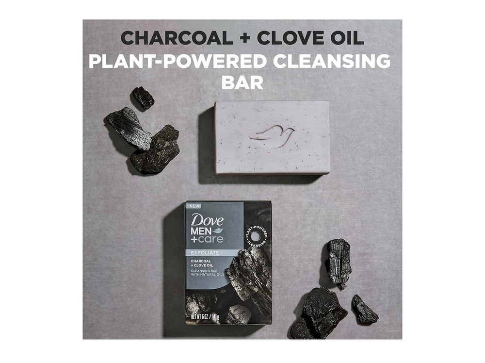 4X Dove Men Care Exfoliate Cleansing Bar - 5 oz (141 g) - Charcoal and Clove Oil