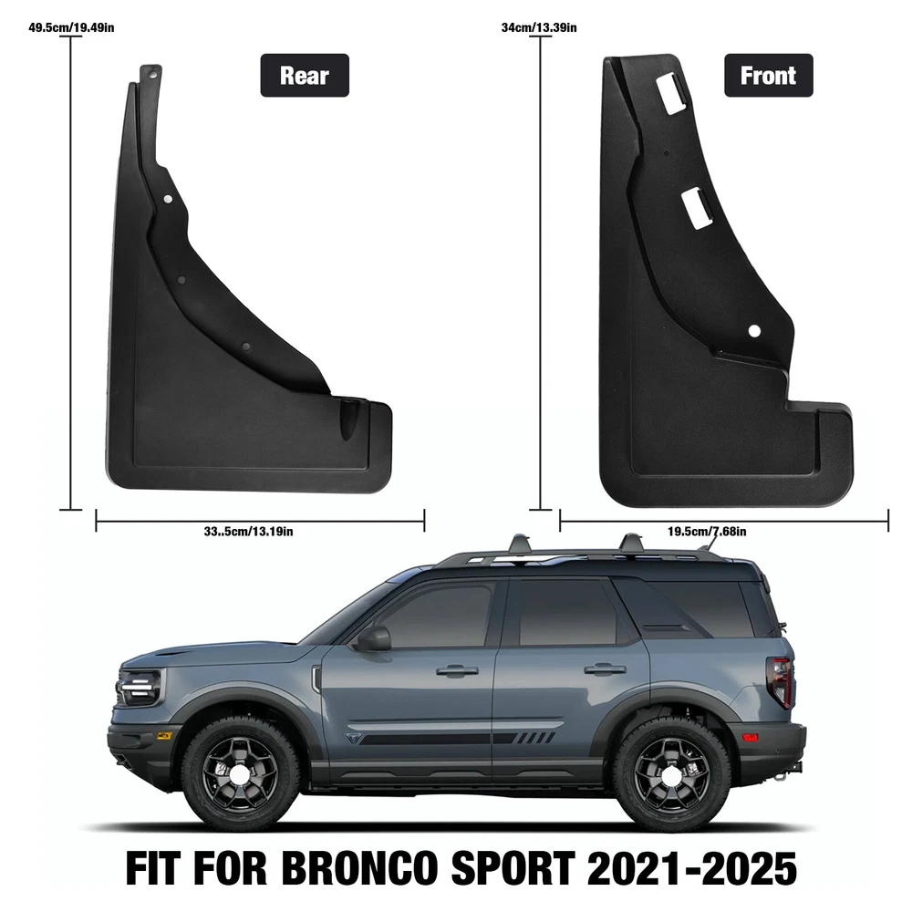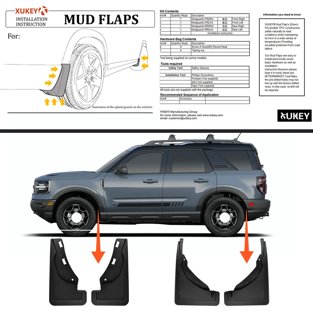 4X For Ford Bronco Sport 2021-2025 Splash Guard Fender Mud Flap Guard Mudguards XUKEY Deluxe Molded Splash Guards provide excellent lower body protection and accent the vehicle styling. Made of Plastic to be rigid and paintable. They are molded to the contours of the vehicle for a custom fit. These tough wearing mud guards seamlessly blend with the vehicles styling and minimise the risk of dirt, road debris and stone chips flying up from the Front and rear tyres.Provide additional protection whilst enhancing the sporty exterior of your vehicle. Brand: XUKEY Fitment: For Ford Bronco Sport 2021-2025 ONLY FIT FOT BRONCO SPORT MODEL Material: Plastic. Molded Splash Guards. Package Includes: 4Pcs (1Set) Mud Flaps a Bag Of Screw Fixings Before purchase, please carefully compare the following part number and photos, to verify proper fitment, also you can email us your vehicle model/ year/ engine/ vin identification number to confirm. Thank You! General Policies : Dear customer,if you have any questions,you can contact us,we will provide the best service for you. Shipping policy : The item will be shipped within 24 hours on payment received except the holidays.(except weekends & official holidays). You can log on to eBay to check your logistics tracking number. Please confirm address before purchase, and cannot change address once purchased. If you need to receive the item quickly, please contact us, you can pay the postage to choose other logistics. Payment: Please purchase and pay for the item through the eBay,only acc e pted the paypal payment. Returns: Please contact us first when return, exchange and refund is required. Any direct return of purchased items will not be processed. Item must be returned in new condition, as received with all accompanied accessories and literature, including the factory carton. Shipping, handling is not refundable unless item is returned because of defect. If the product is defective or damage upon arrival,please contact us immediately,we will provide the solve the problem. Returns accepted within 30 days of delivery date and item must be in original new condition. About us: Our goal is complete customer satisfaction. We will be very honored to provide you with quality service. If there is an issue with shipping or the item you purchased please contact us via e B ay message or call us before opening a case or leaving feedback.We will try our best to resolve any kind of issue.