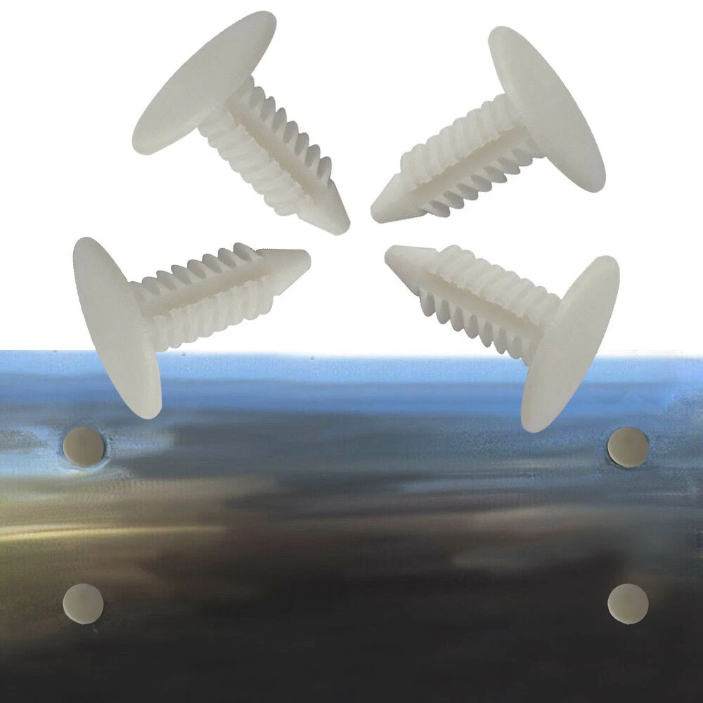 Feature: Condition: 100% brand new and suitable. Made of high-quality nylon material, anti-wear and anti-corrosion,would not break or crack easily during use. Car good accessory, commonly used for fitting side skirts, bumpers and other trim. These clips are suitable for firmly holding anything within a fit diameter hole. This non-OEM product,accessory only! Specification: Material: nylon Color: White Cover Diameter: 18mm ≈ 0.7in. Stem Length: 20mm ≈ 0.8in. Fills Holes: 6-7mm ≈ .25in NOTE: Communication is the best way to solve the problem. If you have any problems after purchasing, please contact us in time, before opening return or case Package includes: 4 Sets Bumper Plugs Front License Plate Holes Cover Plugs