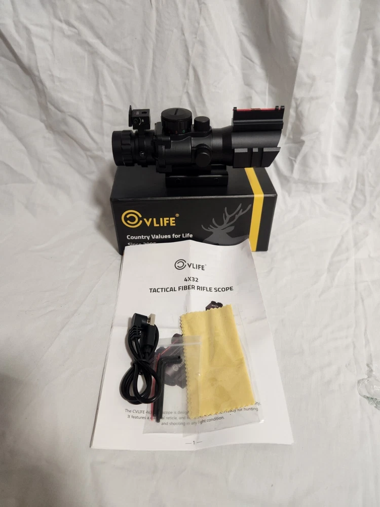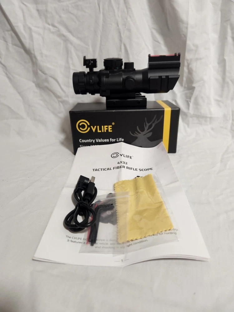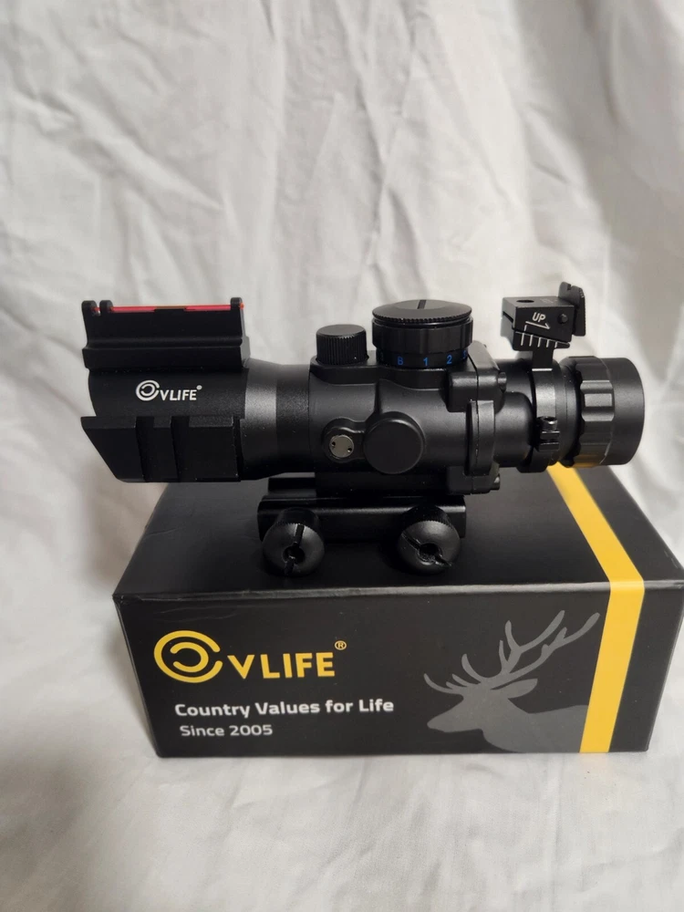 4X32 Tactical Rifle Scope Tri-Illuminated Reticle ACOG Scope W/Fiber Optic Sight