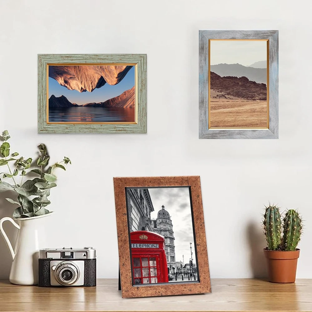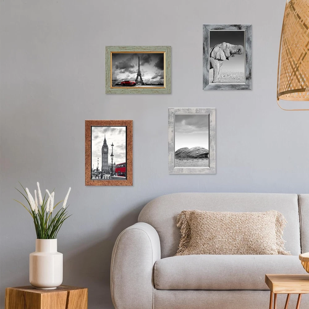Store New Arrivals Add to Favorite View Feedback Contact 4X6 Picture Frame Set of 5, Vintage Photo Frame, Rustic Retro Picture Frame with Tempered Glass, Decorative Art on Walls and Tabletop Placement Description Style Rustic Number of Items 5 Country of Origin China Theme Vintage Unit Count 5.0 Count Batteries required No Target Audience Unisex Adult Product Dimensions 4"L x 6"W Frame Material Polystyrene Finish Type Matted Frame Type Collage Picture Frame Item Weight 1.85 pounds Occasion Mother's Day, Grandparents Day Special Feature Easel Back Orientation Horizontal Mounting Type Wall Mount Color Mix Color-5pcs Cover Material Glass Shape Rectangular Finish types Matted Size 4*6 【Quality materials】 This picture frame is made of premium PS product, ensuring durability and longevity. It is also equipped with tempered glass to protect your photos from moisture, dust, and damage. 【Unique Style】 The picture frame set includes 5 vintage colors, adding a touch of uniqueness to your decor. The farmhouse-style frames perfectly complement various landscape pictures, prints, artworks, and more. Whether it's in your home or office, these frames will create an artistic ambiance, enhancing the overall aesthetic appeal and comfort. 【Convenient to Use】 The picture frames come with a stand and a hanging hook on the back, providing versatile display options. You can choose to hang them vertically on the wall or place them horizontally or vertically on your table, desk, or shelf. 【Multiple Display Options】 The frames come with mat boards, allowing you to display photos of different sizes. With the mat boards, they can accommodate 3.5x5 photos, and without the mat boards, they can fit 4x6 photos. 【Good Gift】 This collage photo frame set is not only practical but also aesthetically pleasing. It makes an impressive holiday gift and an excellent choice for warm and thoughtful presents for your loved Product Description Suitable for a variety of display methods ABOUT US We offer the best prices around on high quality products. Our E-store includes media such as books, movies, music and games while offering electronics, toys, sporting apparel, clothing, tools, general home, garden items and more. SHIPPING We are always working hard to ensure your package arrives as soon as possible. Please understand that some factors like weather, high postal traffic, and the performance of shipping companies are outside of our control. We offer free shipping to the lower 48 states and ship within 2 business days of payment, usually sooner. We do not accept P.O. Boxes. Please provide a physical address. For shipping outside of the continental USA, we only use eBay's Global Shipping Program.The item is shipped to KY and then sent to the rest of the world. International customers are responsible for all duties and taxes. Continue to check out in order to calculate costs for shipping the item to your country. Messages regarding eBay's Global Shipping Program MUST be directed at eBay EXCLUSIVELY. RETURNS We offer a 30-Day Return Policy on items which you are not completely satisfied with. You have the option for a full-refund or an exchange of the item. No returns are available on items shipped outside of the USA. PAYMENT We accept PayPal. CONTACT US This page content is yet to come Please ad us to your favorite seller and visit again later Thank You CUSTOMER SATISFACTION We try our very best to make sure every customer is completely satisfied. If there's a problem, message us! We're happy to help. WE ACCEPT Copyright © 2021 AutoDS. | All Rights Reserved