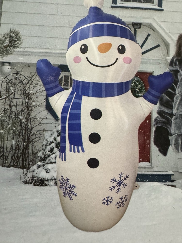 This 4ft inflatable snowman Christmas yard decor by Greenbrier is perfect for both indoor and outdoor use during the holiday season. The snowman design, illuminated with LED lighting technology, adds a festive touch to your home or garden. This free-standing decor is easy to set up and does not require any additional parts for assembly. Made in China, this inflatable snowman is a charming addition to your Christmas decorations.
