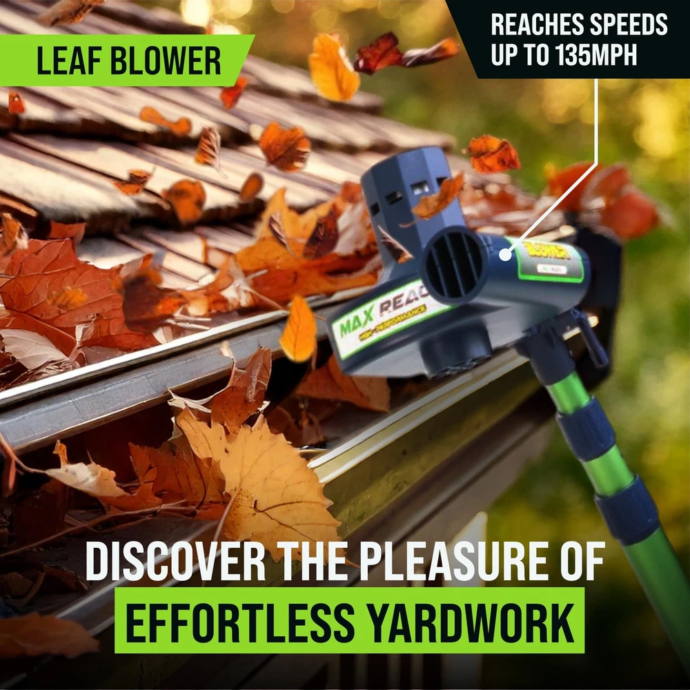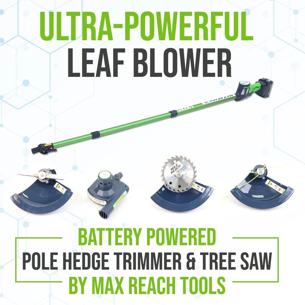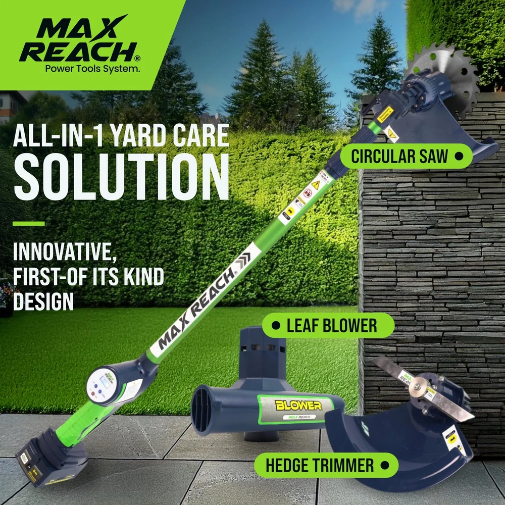 What if your yard work didn’t feel like work at all? Meet the 4-in-1 Cordless Yard Tool, your all-in-one system designed not only to maintain your yard, but to restore your time, your peace, and your joy. Whether you're trimming hedges, cutting small tree branches, blowing leaves off the deck, or edging around flower beds, handles it all with effortless power and surprising ease. Four Functions in One Lightweight Tool: This innovative system includes a hedge trimmer, tree saw, leaf blower, and string trimmer — all attachable to a single ergonomic telescopic pole. Designed for routine yard upkeep, is perfect for homeowners who want to get it done fast, and get on with their day. Lightweight & Telescoping Design: At just 3.2 lbs, is incredibly easy to handle. The extendable pole reaches up to 11 feet, so you can trim trees or tall hedges without ever touching a ladder. Every foot of reach is one less risk. Every ounce saved is more freedom to enjoy. Long-Lasting Battery with No Hassle: Unlike most cordless tools that die after 30 minutes, delivers up to 2 hours of continuous use per charge thanks to its 6Ah lithium-ion battery. No cords. No fuel. No stress. Just uninterrupted productivity and peace. Smart, Safe, and Built to Last We’ve engineered a reverse-thread safety lock that tightens the blade as it spins, not loosens. Plus, our updated nut + washer system ensures secure operation during high-speed tasks. Because performance shouldn’t come at the cost of safety. Quiet & Clean Yard Care With just 70 decibels of noise output, is quiet enough to use anytime, anywhere, even early in the morning or late in the evening. No gas. No fumes. No angry neighbors. Just you and your garden, working together. You deserve tools that work for you, not against you. Tools gives you back your time, your safety, and your joy. 4 Tools in 1 for Total Yard Control , Switch effortlessly between hedge trimmer, pole saw, leaf blower, and string trimmer. One tool, endless possibilities, perfect for routine maintenance and light-duty landscaping. The days of dragging 4 heavy machines are over. Now, you stay grounded, and does the reaching. Hedge Trimmer — Revolutionary One-Blade Patented Elliptical Cut for a smooth, whisper-quiet cut with zero vibration. 11 ft Extendable Reach — Trim tall hedges without ladders or strain. Lightweight at just 1.45 kg (3.2 lbs), perfect for one-handed use. Soft Grip & Wrap-Around Handle — Full comfort and control for vertical and horizontal trimming. Powered by 6.0 Amp battery with up to 2 hours of runtime — ideal for mid-size yards. Because taking care of your home shouldn’t put your back at risk. Turbo-Speed Performance Air Broom — Clear leaves and dust effortlessly from your patio, front yard, and driveway at up to 135 MPH. Built to be silent, smart, and surprisingly strong, all while keeping your peace intact. Cordless Freedom with Long Battery Life, Includes a 6Ah rechargeable battery (upgradeable to 10Ah) for up to 2 hours of continuous work. No cords, no gas, no interruptions, just uninterrupted freedom to finish fast and enjoy your day. Whisper-Quiet & Low Maintenance. Built for modern users, this noise-free, eco-friendly tool eliminates the bulk, fuel, and upkeep of traditional gas yard tools. Quiet enough to hear the birds, and enjoy your garden while working in it.