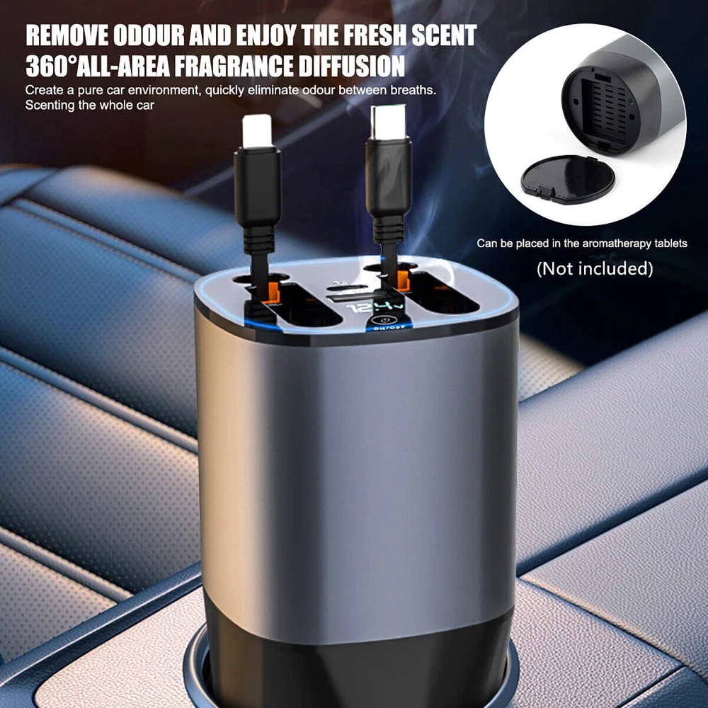 SAFE & SECURE SHOPPING 100% SATISFACTION GUARANTEED FAST SHIPPING Store Categories Store Categories You may also like 4IN1 Retractable Car Charger Dock USB Type-C Cable For Phone Fast Charge Adapter Product Description Features: Four in one interface: Type-C cable+8 PIN cable+USB-C+USB-A four interface charging Comes with a retractable cable: Comes with an 80CM long retractable charging cable for easy storage and free adjustment of length Atmosphere lights: Three colors of atmosphere lights, embellishing the car space Aromatherapy compartment (aromatherapy tablets need to be provided by oneself): There is an aromatherapy tablet compartment at the bottom, where you can place your own aromatherapy tablets to freshen the car air Nylon woven cigarette lighter power cord Voltage display: Real time display of current voltage to understand changes in car voltage Specifications: Material: ABS+PC Extension line length: 80cm Input voltage: DC 12-24V Atmosphere light: blue, red, purple (can be turned off) Power output: TYPE-C: 5V/2A, 9V/2A, 12/1.5A (18W ) For iPhone: 5V/2.4A, USB: 5V/2.4A Package include: 1* Car multifunctional charger Shipping Returns Contact Us Payment Shipping 1. Items sent from US warehouse. 2.Receiving time = Processing time + Shipping time 3. Processing Time: Around 1-2 business Days 4. Shipping Time: 3-5 business day it may have a little delay during some holiday (such as Christmas),any problem ,please feel free to contact Returns 1. 30 days warranty from the purchased date. Please contact us via email before returning the defective item. 2.Our warranty does not extended to any product that are physically damaged or that are not under normal operating conditions as result of misuse or improper installation on the buyer/user's part. 3.Return items should include the original packaging and all accessories. buyers MUST contact us for the returning address. 4.In all cases, buyers pay shipping fees at their own cost to return products for exchange or refund. We will be responsible for the postage of replacements. Refund will be made upon receipt of the returned item. Contact Us Pls contact us if you have any problems,we will try our best to solve for you Payment We accept all verified payment from eBay. Copyright © 2022 Tongtool