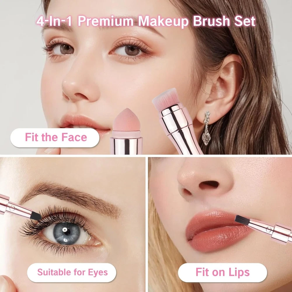 4in1 Travel Makeup Brush Set Eyeshadow Eye Lip Face Concealing Foundation Brush