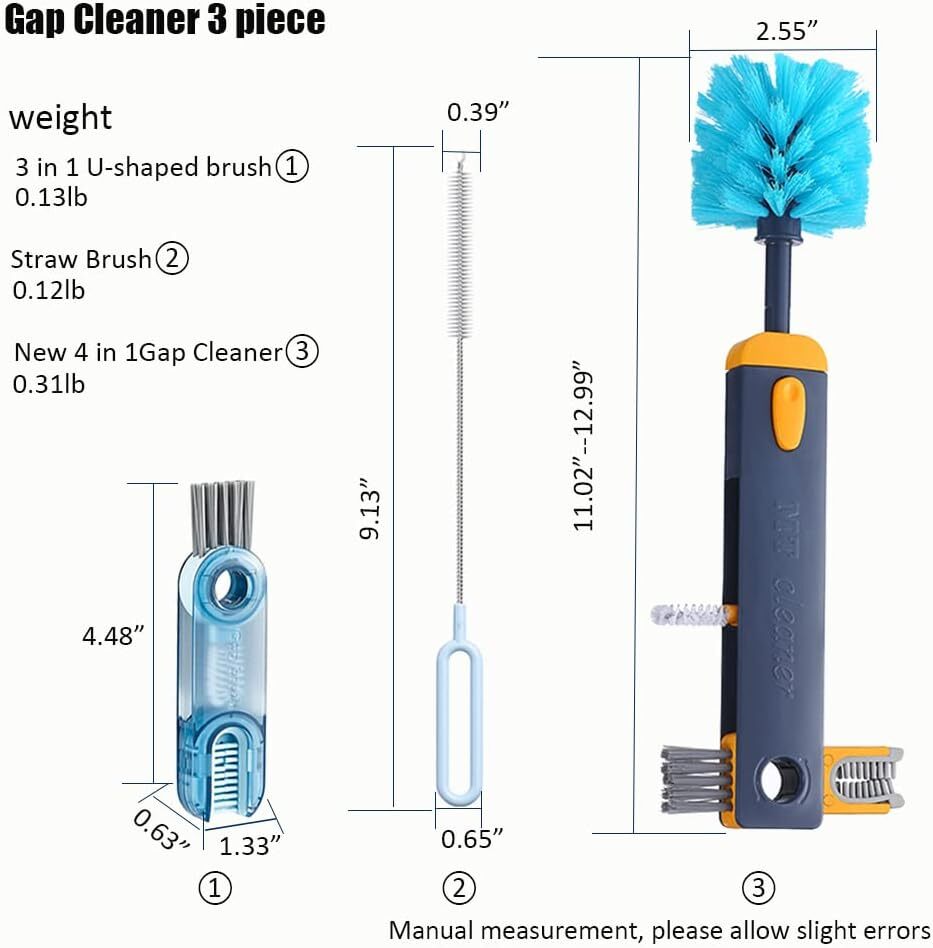 4in1 Water Bottle Cleaner Brush,Brush to Clean Bottles Cup Lid Gap Blue Product Details Brand: SIYANGHOM Color: Blue Handle Material: Plastic Specific Uses For Product: Water Bottle, Straw Product Dimensions: 2.5"L x 1.2"W x 11.2"H Material: Acrylonitrile Butadiene Styrene (ABS) Special Feature: Long Handle, Lightweight, Hanging Hole Shape: Round Included Components: Scraper, Attachment, Brush Surface Recommendation: Wall Number of Items: 1 Theme: cleaning, water bottles Item Firmness Description: Hard Manufacturer: BUMUHU Unit Count: 1.0 Count Item Weight: 5 ounces Item model number: BUM-23 Water Bottle Cleaner Brush for Washing Narrow Neck Containers, Vacuum Sports Bottle, Tumblers, Flask, Vase and Glassware (Teal)