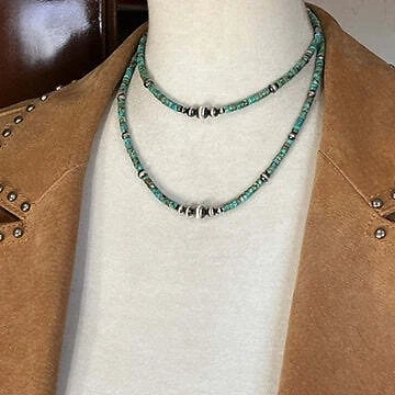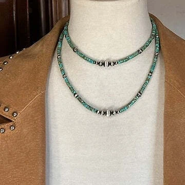 4mm Kingman turquoise with 4mm to 8mm sterling silver beads, Southwest Pearls. The silver beads have been darkened (oxidized) and then polished by hand, leaving the edges dark. This item is made to order. Production time is 1-3 business days. Timeline is dependent upon current volume of orders. Most orders ship in one day. If you have a specific deadline, please contact me before purchasing so your expectations can be met. Everything in the shop is real turquoise and sterling silver. Nothing is plated. You are purchasing one necklace necklaces are measured from end to end choose your length in the drop down box lobster clasp The beads are strung on a strong and flexible, nylon coated, 49 strand stainless steel, professional beading cable Powered by ExportYourStore.com