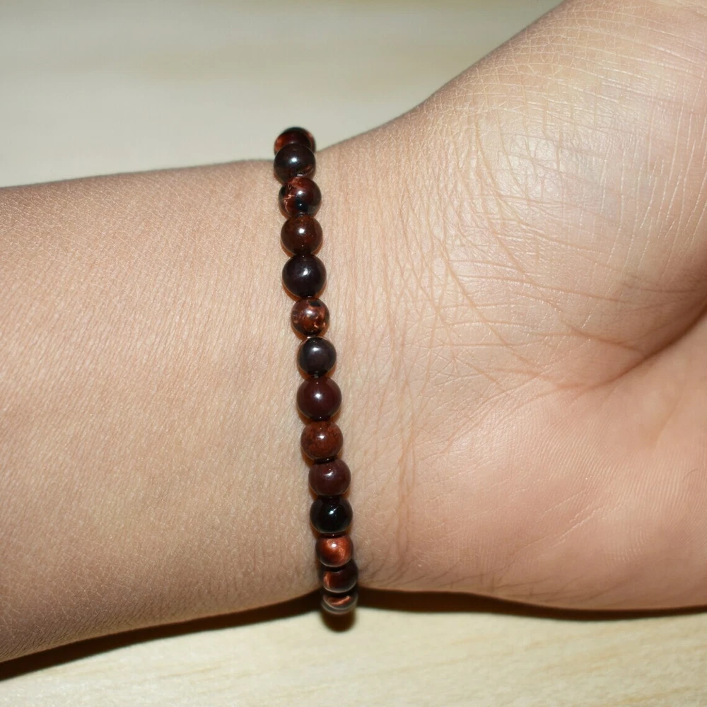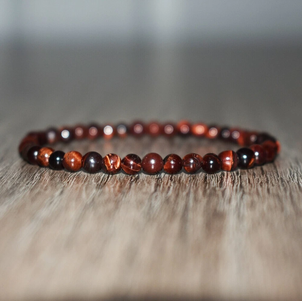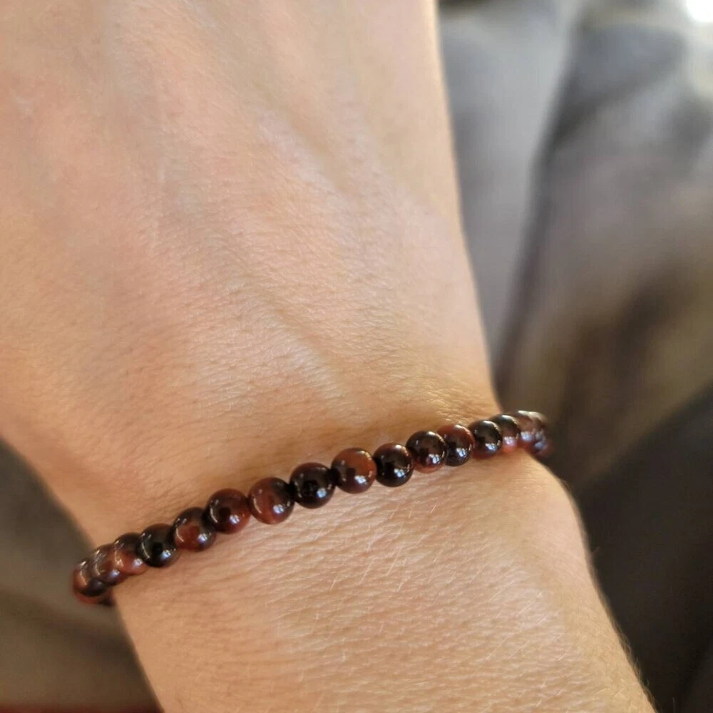 Materials: Red Tiger\'s Eye Stone Size: Fits about 6 ~ 7.5 inch wrist, elastic Handmade Artwork Made with Love and carefully manufactured Designed for personal wearing or to be the Christmas, Halloween, birthday, anniversary gifts for father, mother, friends, lovers, couples, motorcyclists bikers, tattoo fans... or just yourself