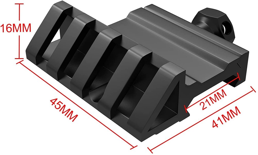 This Offset Tactical Mount is designed specifically for 1 inch (25.4mm) flashlights & lasers Mounts to virtually any Picatinny or Weaver style rail with the easy-to-use thumb nut. Mounts flashlight or laser at a 45 degree offset. Features: 6061 aircraft grade aluminum. Rugged design can withstand heavy use. Easily and securely mounts to Picatinny/Weaver rail. Specifications: Dimensions: 1.75" x 2" Weight: 1.5 oz Color: Black Included: 4Pcs 45 degree offset rail mount