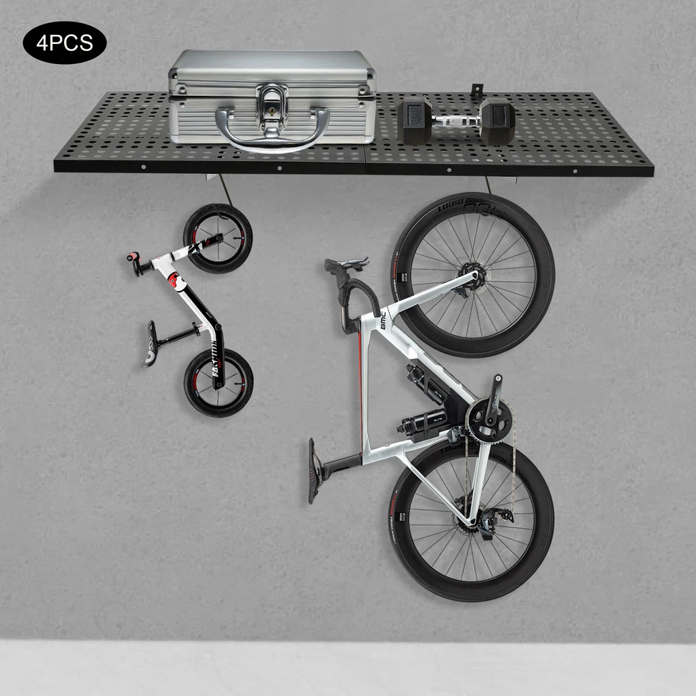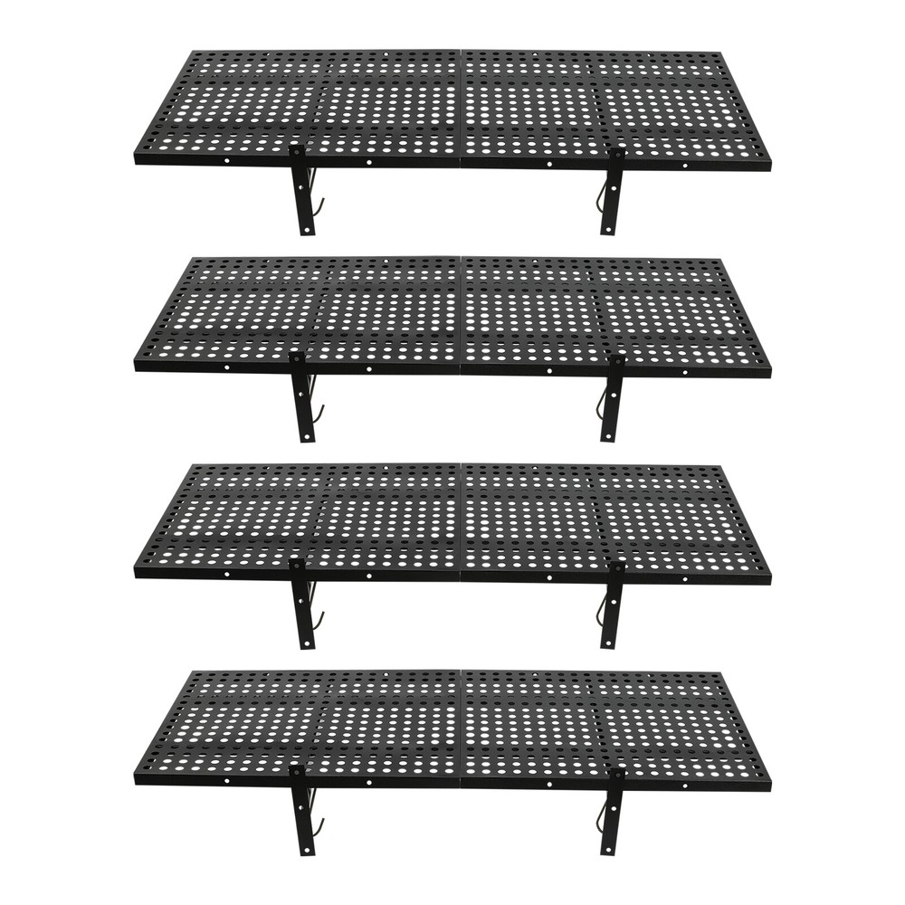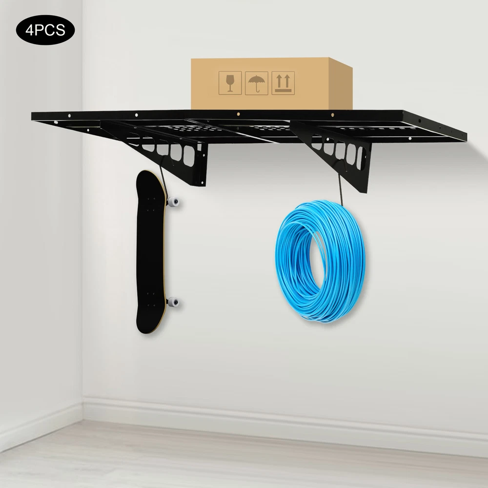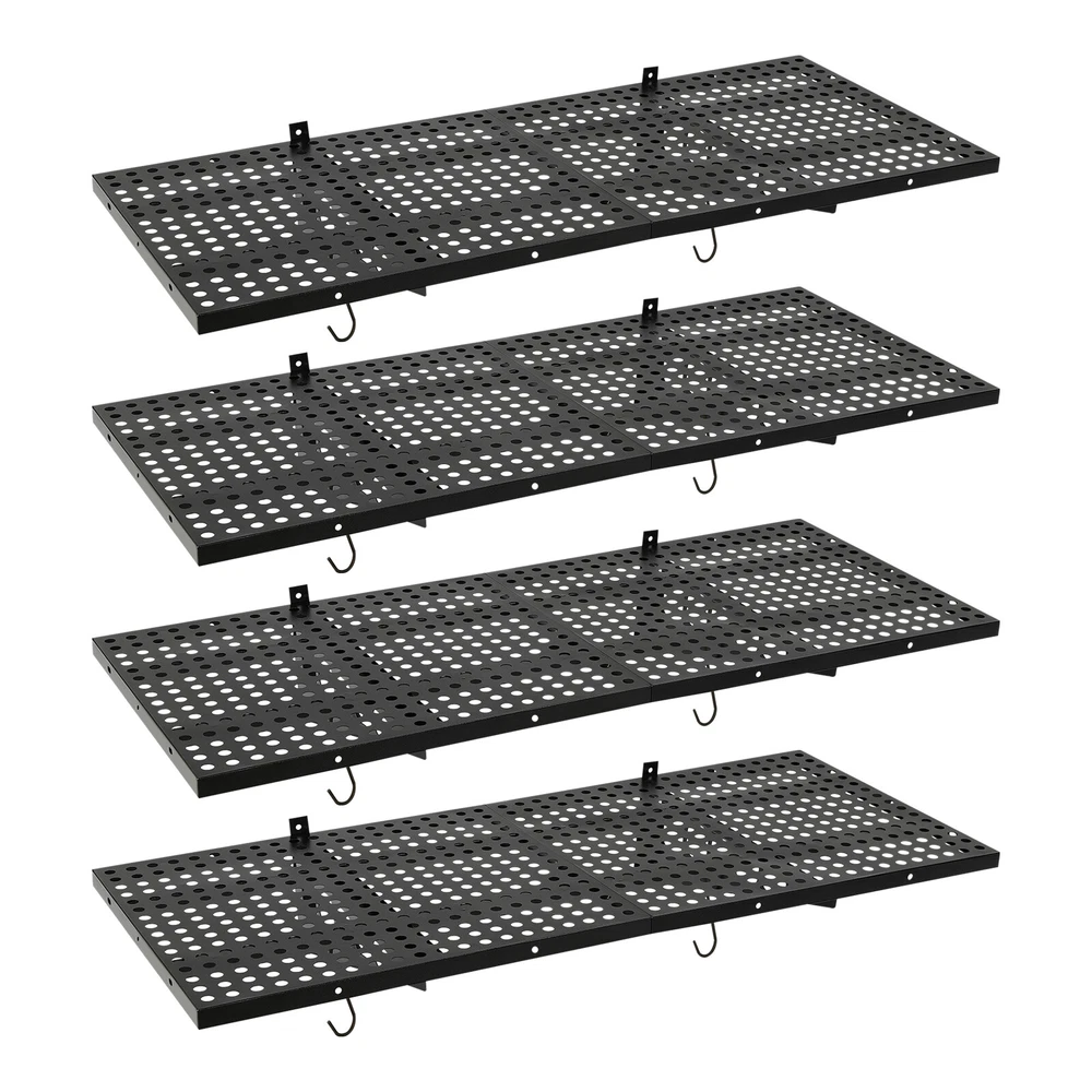 Description This set of garage wall shelves is made of high-quality carbon steel, which boasts strong load-bearing capacity, stable structure, rust resistance, and durability. The perforated surface makes it strong and non-slip at the same time, which ensures safety when storing items. Meanwhile, it is able to store a wide range of items with a load capacity of up to 560 lbs, which can help you effectively utilize your garage space and improve storage efficiency, providing you with efficient, safe, and convenient storage solutions. Key Features Sturdy&Durable: It is made of high-quality carbon steel with a plastic spraying surface, which features high hardness, high strength, and high resistance to corrosion and rust, making our products can be used for a long time. Large Capacity: The wall-mounted storage rack is 20*48 inches and the removable storage hooks can be moved to any position, allowing you to store various sizes of items and tools on it and meet your actual storage needs while saving space. Strong Structure: The stable triangular brackets and sturdy perforated panels with welding process allow our products to carry up to 560 lbs(two boards), which can meet your various storage needs. Flexible Installation: It can be installed vertically or horizontally, allowing you to use the appropriate installation method depending on the size of the installation space and the items to be stored. Money Saving: The package includes enough mounting accessories such as expansion screws and nails to save you time and money. Easy to Clean: It is simple and easy to disassemble making cleaning effortlessly. You can wipe it with a damp rag or disassemble it and rinse it with water for a complete cleaning. Space Saving: Its compact design takes up small wall space and is capable of carrying quite a lot of items. It organizes floor clutter into wall space, expanding more space to use and making your garage and storage room neater. Ideal Gift: With a strong structure and premium material, it is a nice gift for your friends, colleagues, and families for organizing their garages or warehouses. Customer Service: We aim to provide quality products and services. If you have any problems, please feel free to contact us. We will reply and solve the problem for you as soon as possible. Details Hanging Hooks: 8 hooks can help you easily store or take frequently-used tools like hammers or drills, or your clothes, making your work more convenient and highly efficient. Perforated Plates: They are not just strong and durable but also boast good ventilation, keeping your items dry and allowing the odor to dissipate in a timely manner. Application It can be installed on wooden and cement walls for storing tools and items in your warehouse or garage. How to Install Measure the installation distance of the bracket. Place the installation template against the wall and place it at the proper height by using a level. Mark the center of the circle by positioning holes of appropriate width. Remove the installation template and then punch holes in the marked positions. Install the bracket. Secure the perforated plate to the bracket. Installation complete. Specifications Color: Black Material: Carbon Steel Shelf Type: Bracket Shelf, Floating Shelf Shape: Rectangular Surface Treatment: Plastic Spray Process: Welding Mount Type: Wall Mounted Assembly Required: Yes Each Product Size(Two Boards): 50.8*121.92cm/20*48inch Each Bracket Height: 20cm/7.87inch Distance Between Center Points of Wall Studs: 60.96cm/24inch Load Bearing of Two Boards: 254kg/560lbs Packaging Size: 52*62*12cm/20.47*24.4*4.72inch Gross Weight: 18kg/39.68lbs Package Included 4*Garage Wall Shelves 8*Hooks All Accessories for Assembly Notes Please check the size carefully before ordering. It is normal that the expansion screw will blow up after the force is applied. It cannot be installed on metal walls. When installing it on cement walls, you need to drill holes in advance. When installing it on thin wood walls or hollow walls, you need to install a certain thickness of solid wood struts(not included) laid on the front or back of the wall to provide support. Before purchasing, please check the product information carefully to make sure the load bearing of your wall and the installation environment are suitable! Please check the screw hole spacing carefully if it is installed on the studs! Please allow the slight color difference caused by the shooting light and 1-3cm error due to manual measurement, and make sure you do not mind before you order. Payment Delivery details Terms of sales About us Contact us Payment We accept ebay payment 。 Fees such as import duties, taxes are not included in the item price or shipping costs. These charges are the buyer's responsibility. Delivery details Shipping: 2-9 working days to: USA Terms of sales We maintain high standards of excellence and strive for hundred percent customer satisfaction. Feedback is very important to us. We hope that you contact us immediately before you give neutral or negative feedback, so that we can address your concerns. It is impossible to address issues if we do not know about them! About us Your satis faction is our ultimate goal. We work hard to earn your trust and future business. Our certified technicians have tested each item before shipping. The unit comes with 1 year limited warranty on all manufacturing defects. a) If you receive a defective item, you may return it or ask for a discount. Please contact us within 14 days after you receive the package. b) What you returned must be intact and in its original packaging as re? u. Customer is responsible for shipping costs of the returned item. c) We will cover the cost of shipping back t with the shipping rate indicated in the registration page. We will send you a new unit or refund the full payment you paid. Thank you. Contact us Business Hour Business Hour: Monday To Friday: 8:30 AM to 5:00 PM (Beijing China time) Due to time zones, our re