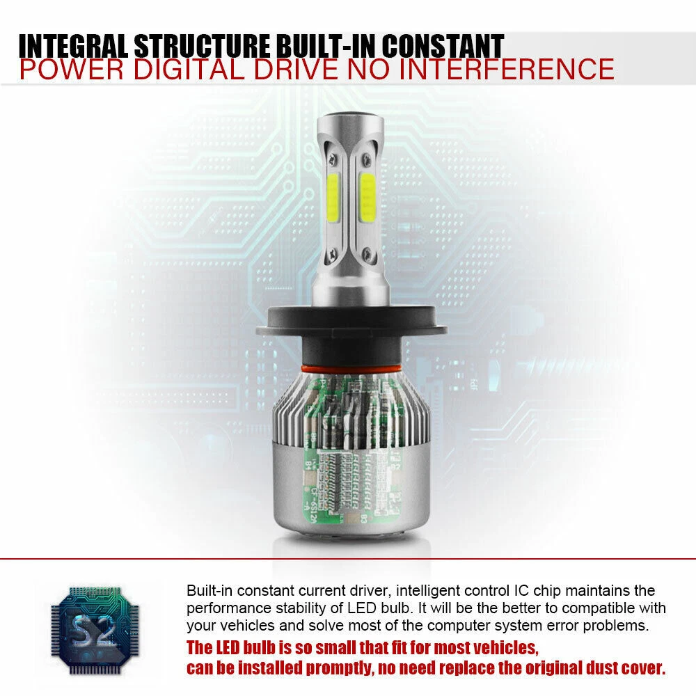 4"x6" Stock Style H4 Headlights w/ LED Bulbs - Set of 4 THESE ARE H4 CONVERSION HEADLIGHTS WITH A STOCK STYLE GLASS LENS AND METAL HOUSING! INCLUDES (4) HIGH INTENSITY LED H4 WHITE LIGHT BULBS! 4X6 INCH SQUARE HEADLIGHT - SET OF 4 Made from real glass and not cheap plastic Come with a H4 plug In-stock STOCK STYLE GLASS LENS / METAL BACKSIDE FITS STOCK BUCKETS,( Some models may require minor modifications) LOW BEAM AND HIGH BEAM BRIGHTER AND WHITER THAN STOCK LIGHTS BULBS ARE REMOVABLE AND REPLACEABLE INCLUDES 6500k WHITE LED LIGHT BULBS LOW AND HIGH BEAM FUNCTION PLUGS INTO FACTORY WIRING PLUGS DOT / SAE APPROVED THIS LISTING IS FOR A NEW SET OF 4 - 4x6" STOCK STYLE GLASS LENS / METAL BACKSIDE H4 CONVERSION HEADLIGHTS WITH WHITE LED LIGHT BULBS. THIS SET INCLUDES 2 HIGH BEAM & 2 HIGH / LOW BEAM HEADLIGHTS. THESE HAVE THE ORIGINAL SHAPED PRONGS ON THE BACK SO THEY WILL PLUG RIGHT INTO YOUR ORIGINAL WIRING HARNESS PLUGS. THESE ARE BRIGHTER AND WHITER THAN THE STOCK STYLE INCANDESCENT SEALED BEAM HEADLIGHTS. IN RARE CIRCUMSTANCES, WIRING MODIFICATION MAY BE REQUIRED. THESE ARE FOR ANY CAR OR TRUCK THAT HAS 4 SQUARE 4x6" HEADLIGHTS. DOT / SAE APPROVED. Description: Model: H4/HB2/9003 light Source Model: LED Chip, 2-sides leds, super bright Power: 200w/Set & 100w/bulb Lumen: 16000LM/Set & 8000LM/bulb Operating voltage: DC9-30V Beam Type: High beam & Low beam& Fog beam Material: Aluminum PCB and PA66+30% GF Plastic Beam Angle: 360° Color Temperature: 6500K Cool White Lifespan: over 50000h Working Temperature: -40-+80 Centigrade Waterproof rate: IP 68 Plug for this listing: H4/HB2/9003 Plug High Low Beam LED Headlight Bulbs Kit Connector Type: Plug and Play Application: LED Headlights Headlamp Lamp Bulbs High or Low Beam No Splicing of harnesses required for LED bulbs Uses 75% less power than Halogen or HID bulbs 3 times brighter than stock halogen bulbs OBC Error free operation Dramatically improves visibility at night INTERCHANGE: H4656 / H4651 / 4651 / 4652 THESE ARE GLASS AND WE WILL TAKE EXTRA CARE IN PACKAGING. Package Includes: 2 Pair of Headlight Housing (Pair Passenger and Driver Side) 2 Pair of H4 9003 LED Bulbs 2 Pair H4 9003 to H13 9008 Connectors Cable Adapters Harness