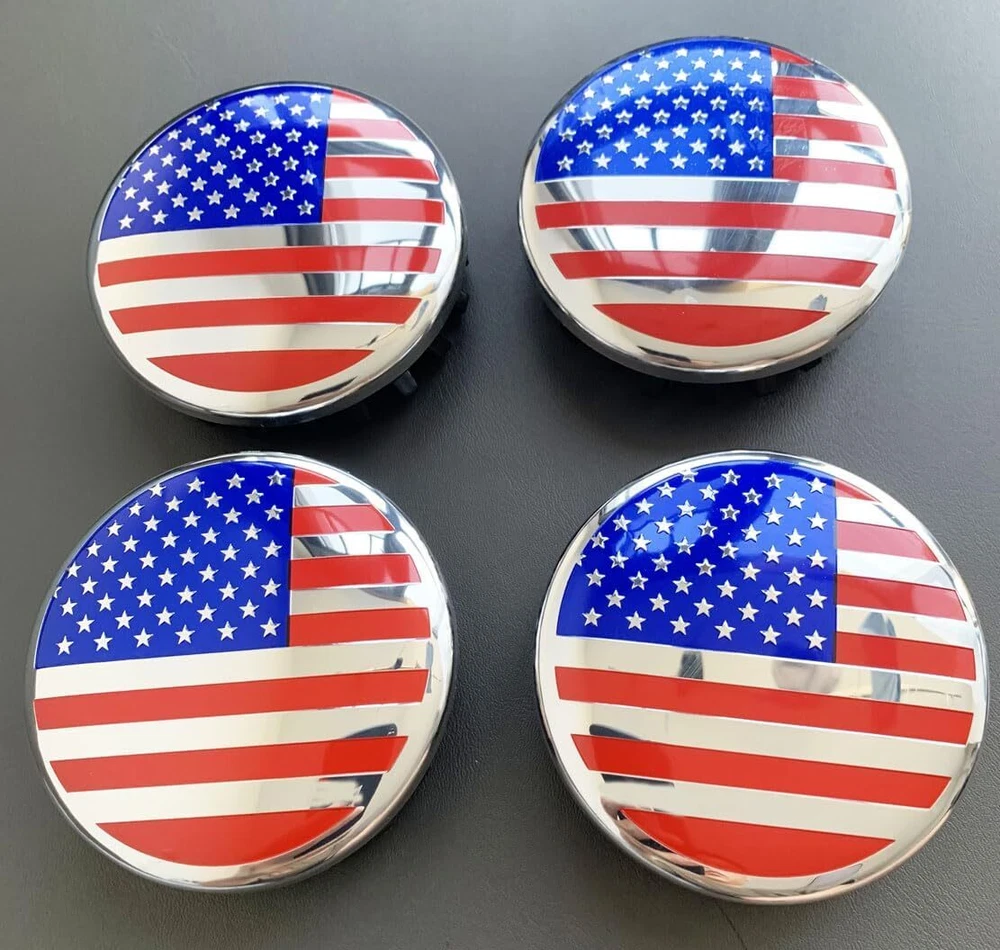 4pcs 83mm Chevy Cadillac Escalade EST Red White Blue US Flag Wheel Center Caps