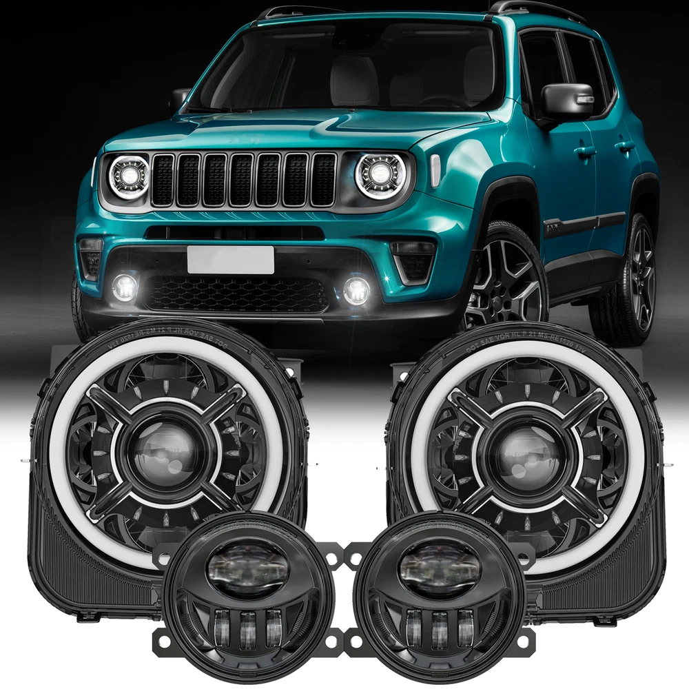 9inch LED Halo Headlights +LED Fog Lights Assembly For Jeep Renegade 2015-2018 FITMENT For Jeep Renegade 2015-2021 9 Inch DOT Approved LED Headlights SPECIFICATIONS Height: 250.4mm/ 9.86inch Width: 237.3mm/ 9.34inch Depth: 203.6mm/ 8.02inch Color Temperature: 6000K Voltage: DC 12V Power:50W@High Beam, 30W@Low Beam Lumens:5000lm@High Beam, 2400lm@Low Beam Position lamp:3.9W Outer Lens Material: PC Outer Lens Color: Clear Housing Material: Die-cast Aluminum Housing Color: Black DESCRIPTION DOT Compliant-- The DOT-compliant headlight lights guarantee your lights are Compliant in the United States Department of Transportation for use in the U.S. & Canada to secure the safety of others. Exclusive Latest Design Headlights-- 12 starry and “X” design with Halo ring. Projector and reflector combination, ensure the lights source pass through the cover in high transmission rate, keep the light steadier concentrated. More brighter 3 times than stock halogen bulbs or other similar led headlights. Provides you the best driving experience. Super Brightness-- High Beam@2600LM Low Beam@1400LM Pure White DRL Daytime Running Lights for 9 Inch LED headlight. Built-in antiflicker harness to avoid any flicker issues. Sharp cut-off line with perfect halo beam pattern gives off a more even light, NOT blind other drivers while providing the brightest and widest vision. High Quality & Durability-- Better Waterproof with 3 rebreather valves on the back to avoid fog get inside the headlights. Die-cast Aluminum Housing and Anti-scratch Polycarbonate lens will resist the test of time up to 50,000 hrs. 4" Round LED Fog Lights SPECIFICATION Diameter: 91.8mm/ 3.61 inch Depth: 76.9mm/ 3.03 inch Color Temperature: 6000K Voltage: 12V DC Power: 27W Lumen:1200lm Outer Lens Material: PC Housing Material: Die-cast Aluminum Housing Color: Black DESCRIPTION Durable Construction-- The steady housing is made of strengthened PC lens and Die-cast aluminum that the lifespan is more than 50,000 hours which it's strong enough to deal with all kinds of bad conditions. Excellent Heat Dissipation System-- Die-cast aluminum alloy housing can efficiently dissipate more heat and keep cool, make the lamp lifespan that more than 50,000hrs; IP waterproof 67 rating ensures all-weather dependability. Easy Installation-- Just Plug and Play. Complete set fog Lights are designed to simply plug into your existing wiring without any cutting or drilling. Safe Driving-- The response speed of LED lights is faster than halogen lights, and it have ultra-high brightness and ultra-wide field of view, so the driver can drive freely in the dark without worrying about driving problems caused by the darkness of the road. PACKAGE INCLUDED 2pcs LED Fog Lights 2 pcs 9 Inch LED Headlights with Daytime Running Light Payment Shipping Returns Contact us Feedback Payment Payment methods : Payment is expected within 7 days of auction close. Unpaid Items will be forfeited per eBay . Immediate payment needs to be processed for items with Add to Cart option so that any promotional discounts can be applied to your order immediately. International Buyers – Please Note: a) Import duties, taxes and charges are not included in the item price or shipping charges. These charges are the buyer's responsibility. b) Please check with your country’s customs office to determine what these additional costs will be prior to bidding /bu ying. Shipping 1.All items will be shipped to your eBay Address .Please update your latest address when you check out,and please make sure to provide us with correct,precise and detailed shipping address. 2.If your shipping address and the item location both are US, it will be shipped by USPS or UPS. All items will ship within 1-2 business days after the we receiving clear payment. 3.Service transit time is provided by the carrier. Transit times may be a little delayed during holiday season. 4.International order will be sent from China within 3 business day after the we receiving clear payment. ---For International Orders. Both are the same products and same warranty. Duties and taxes may apply. Please check with your country's custom and eBay policy for more information. 5.Where is my tracking number? Please log on your account, click "my eBay"-->"my summary", or open your email box and find the shipping notification email. Returns Our 30 days Satisfaction Guarantee assures our customers that they will receive all orders promptly and exactly as described. In addition, we offer FREE RETURNS for US buyers. It allows customers to return faulty and unused products for any reason within 30 days from the date of purchase. *Please contact us first before you sent a return request* The seller is responsible for all return shipping, including those due to customer errors or defective items. 1) If you receive an item that is incorrect, damaged, defective or not as described, please contact us for a partial/full refund or replacement. 2) If you want to return the item, please contact us within 30 days after receiving the package. 3) If you open a return request ,please select the reason for return: Doesn't fit/Changed my mind/Just didn't like it/Order by mistake. 4) We provide the 1 year of product warranty. If your product have quality problem within the warranty period, please contact us to provide repair or replacement services to you. Note: Return products must also be in its original condition: including box, packaging and all other accessories Contact us Our Working Time:(GMT+8)Monday to Friday,9:00-18:00. Have Question or Problem? Please contact us first! 1. We will reply you within 24 hours once we receive your email during business days. There will be some delay on response if you send message or E-Mail on weekend. 2. Describe your question clearly. We have a very professional and attentive customer support team. We will give you the best solution by our great communications. 3. We have always been trying to provide the best service and reliable pro