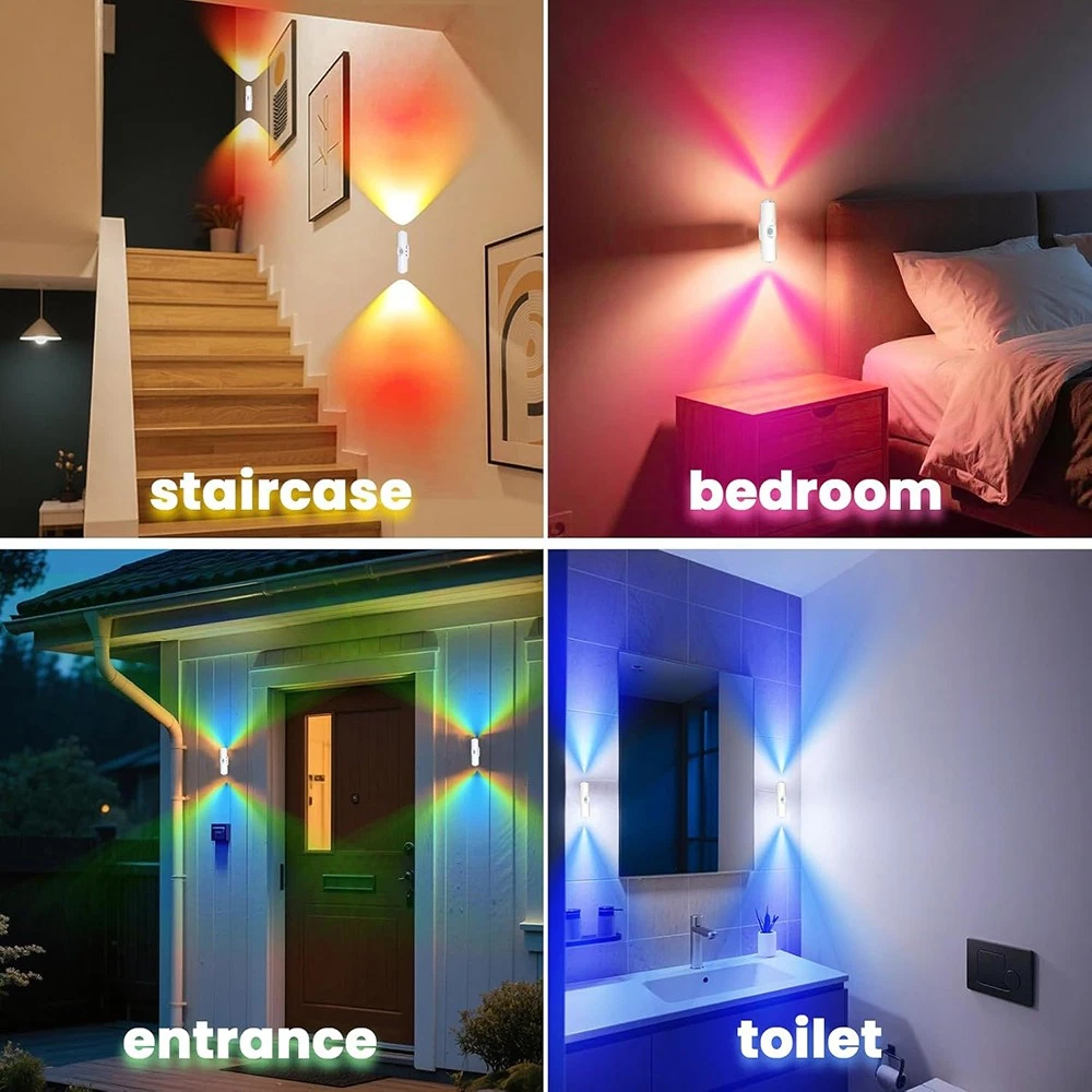 Description: Motion Sensor Night Light: With a triple sensing system that combines human detection, light control, and motion sensitivity, the motion sensor provides a 120-degree detection angle and a sensing range of 3-5 feet, ensuring full coverage of your space. Automatically turns off after 15 seconds of no motion, helping to minimize power consumption. 3 Lighting Modes: The rechargeable night light with motion sensor has 3 lighting modes built in: "Off" mode - always off; "On" mode - always on; "Auto" mode - automatically turns on when motion is detected in the dark, and turns off after 15 seconds of inactivity. Magnetic Installation: Hassle-free installation with magnetic mounting and sturdy adhesive backing, no tools or professional help required. Easy to move charging, so no dedicated power outlet is required. Long-lasting Rechargeable Power Supply: Equipped with a 400mAh rechargeable battery, no need for frequent charging, energy-saving and environmentally friendly. Portable cordless wall light with USB charging type-c port. 7 Color Mode Adjustments: With 7 light color, you can personalize your lighting experience and match your mood or environment. You can easily switch between different color options with just one touch. Perfect for creating the right atmosphere in your living space, bedroom, bathroom, hallway, nursery or entertainment area. Specification: Material: Plastic Control Method: Motion Sensor Lighting Method: Adjustable Room Type: Various Room Types Mounting Type: Freestanding Accessory: USB Cable Mounting Location: Wall mount Power Supply: USB Powered Battery Properties: Rechargeable Battery Battery Capacity (mAh): 400mAh Light Color: 7 Color RGB Color Package Included: 4 x Night Light 4 x Cable