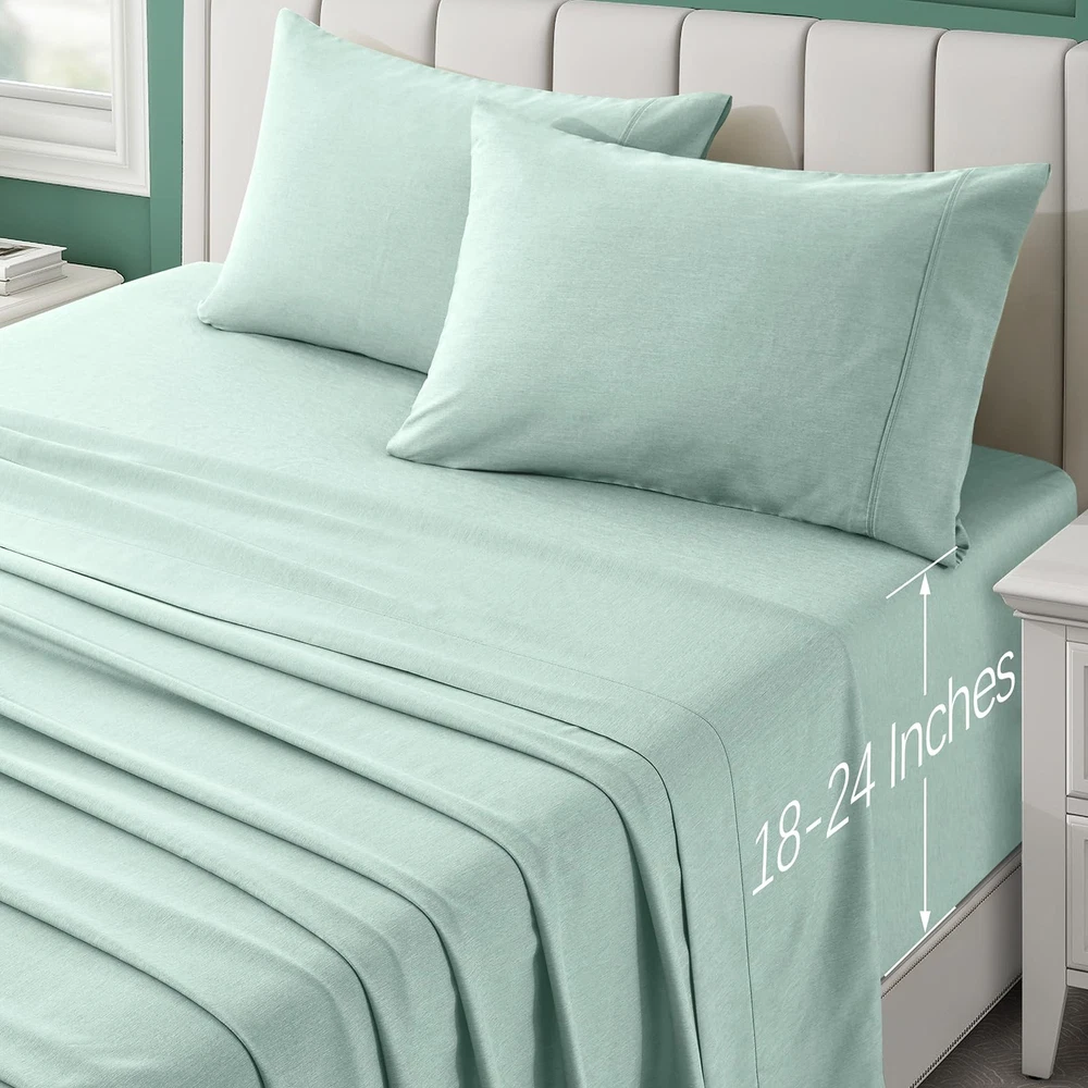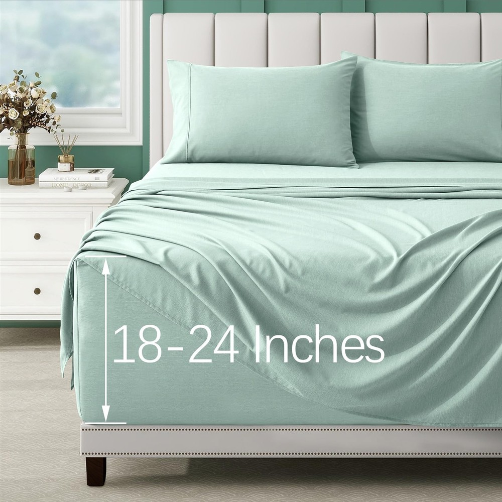 These sheets are a game-changer for hot sleepers! The bamboo-derived rayon keeps them incredibly soft and cool all night, while the deep pockets fit my thick mattress perfectly. I wake up feeling refreshed thanks to the silky, breathable fabric that doesn’t trap heat. The elastic holds snugly, and the colors add a nice touch to my bedroom. Highly recommend for anyone wanting luxury comfort without overheating!
