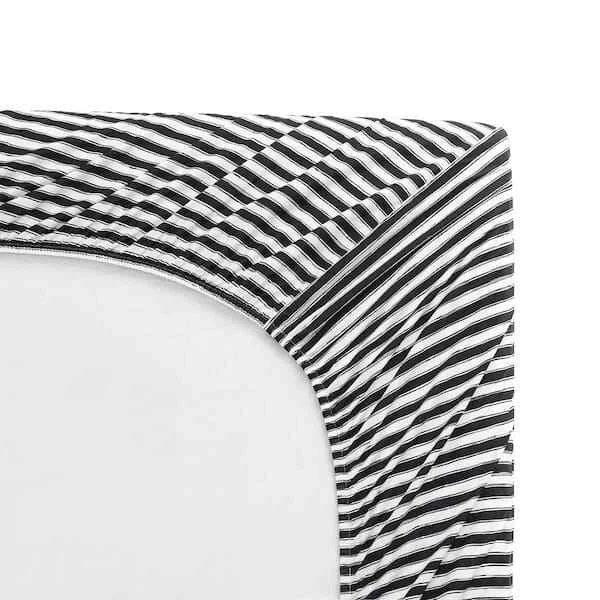 The Betsey Johnson sketchy stripe sheeting features a play on classic striping in a whimsical Betsey manner combining a bold black with white. Add some fun with Betsey's cotton percale sheet set. Available in an array of additional designs, these 200 thread count sheets will add an extra layer that is cool to the touch. Breathable and lightweight, this cotton construction is perfect for long-lasting comfort. Each sheet set includes one flat sheet, one fitted sheet, and two pillowcases (one for twin and twinxl sizes). The fully elasticized fitted sheet prevents slipping from the mattress and ensures the perfect fit. This set fits mattresses up to 18" deep (16" deep for twin/twinxl size and 17" deep for full size). This set is machine washable for easy care.