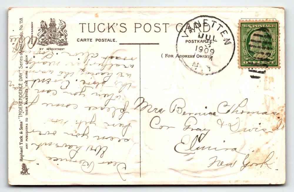 Posted with 1909 cancel. Antique original vintage post card. Has corner dings. and age wear. Stock# usa131. Additional postcards are in our store. All post cards are old originals and may or may not have writing on back. Bundle and save by using cart and making single payment. Save by using the cart to bundle orders.