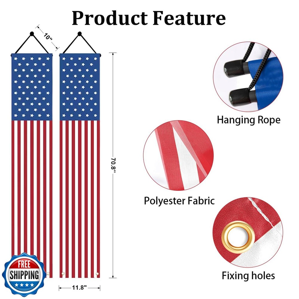 4th of July American Flag Patriotic Decorations 12"x71" Hanging Banners Porch Signfor Memorial Veterans Presidents Election Day Decor Flag (2 Pcs) Features Celebrate with Patriotism: Deck out your space with our patriotic decorations, perfect for Memorial Day, Independence Day, Veterans Day, and more. Featuring vibrant red, white, and blue designs, our durable American flag banners and decor set the right tone for any patriotic event Versatile Outdoor Use: Whether you're decorating the porch, yard, or garage, our outdoor-ready banners and signs, made from high-quality materials, ensure your patriotic spirit shines through, rain or shine Easy Setup and Storage: Our patriotic decor comes pre-assembled with convenient grommets for quick hanging. After the celebrations, easily fold and store these compact banners and decorations for the next patriotic occasion Eye-catching Designs: Make your 4th of July and Labor Day celebrations unforgettable with striking decorations that catch every eye. Our banners are designed to stand out with bold American flag motifs and festive graphics Sustainable Choice for Every Occasion: Invest in eco-friendly patriotic banners that can be reused year after year. Not only do they maintain their vibrant colors, but they also help you celebrate America’s holidays sustainably Shipping Free & Fast Shipping: We offer free shipping to most of the USA with a normal delivery time of 3-7 days. However, due to the current situation, additional delivery time (up to 3 weeks) may be required for some items. Alternative Carriers: We may use alternative carriers (e.g., USPS, FedEx, UPS) to ensure your package arrives safely and on time. Due to the use of multiple carriers, we are unable to provide a tracking number automatically. Handling Time: Orders are processed and shipped within 1-2 business days of receiving cleared payment. Shipping Restrictions: Shipping to Alaska, Hawaii, Puerto Rico, Guam, and other US territories may incur shipping charges or delivery restrictions. Please contact us before ordering, or your order can be refunded/cancelled. State Restrictions: Certain items may not be shipped to California due to state regulations. Contact for Tracking Updates: If you require tracking updates or have any concerns about the delivery of your order, please feel free to contact us, and we will be happy to assist you. Return Policy 30-Day Hassle-Free Returns: If you are not completely satisfied with your purchase, you can return the item for free within 30 days of receiving it for a full refund or exchange. Easy Return Process: Contact us, and we will provide you with a prepaid return shipping label and detailed instructions. No Restocking Fee: There are no restocking fees for returns. However, the buyer is responsible for return shipping costs if the return is not due to a seller"s error. Refund Processing: Refunds will be processed within 1 business day of receiving the returned item in its original condition. Feedback Your feedback is extremely important to us. We strive to provide the best products and customer service possible. If you are satisfied with your purchase, please take a moment to leave us a positive review. If you have any concerns or issues with your order, please contact us before leaving negative feedback. We are committed to resolving any problems and ensuring your satisfaction. Contact Us If you have any questions or concerns, please feel free to reach out to our customer support team. You can contact us through the eBay messaging system. We are available Monday to Friday, 9:00 am to 5:00 pm EST, and we will do our best to respond to your inquiry within 24 hours. Thank you for supporting our small family business!