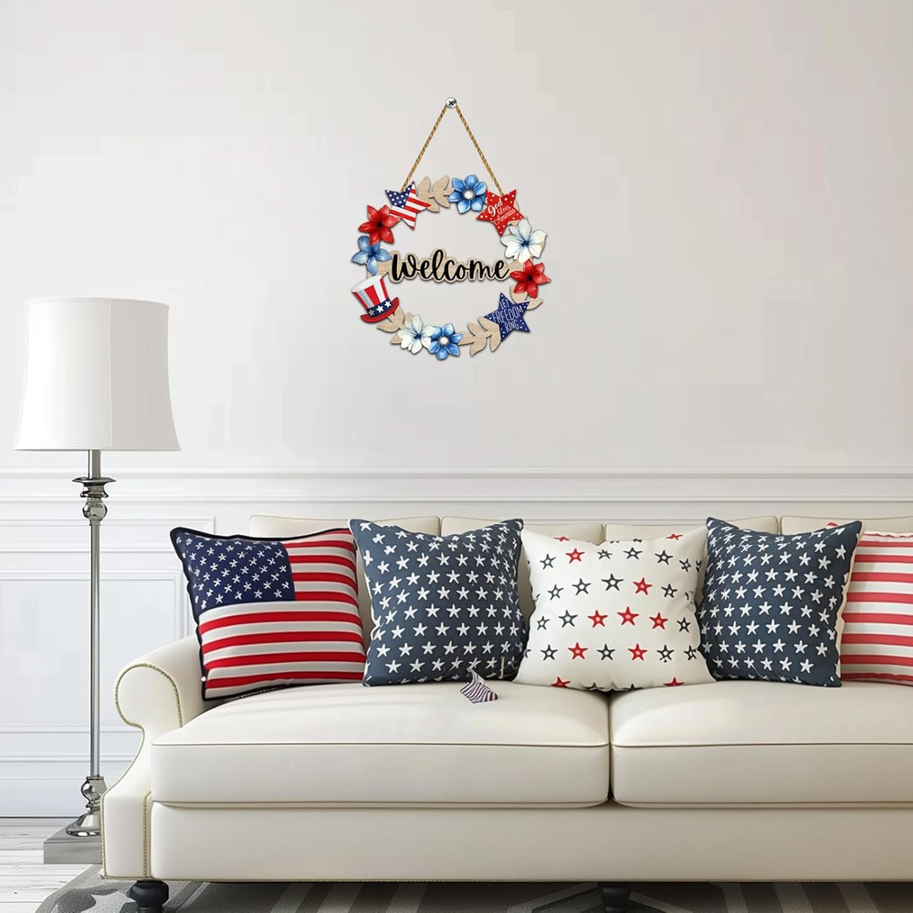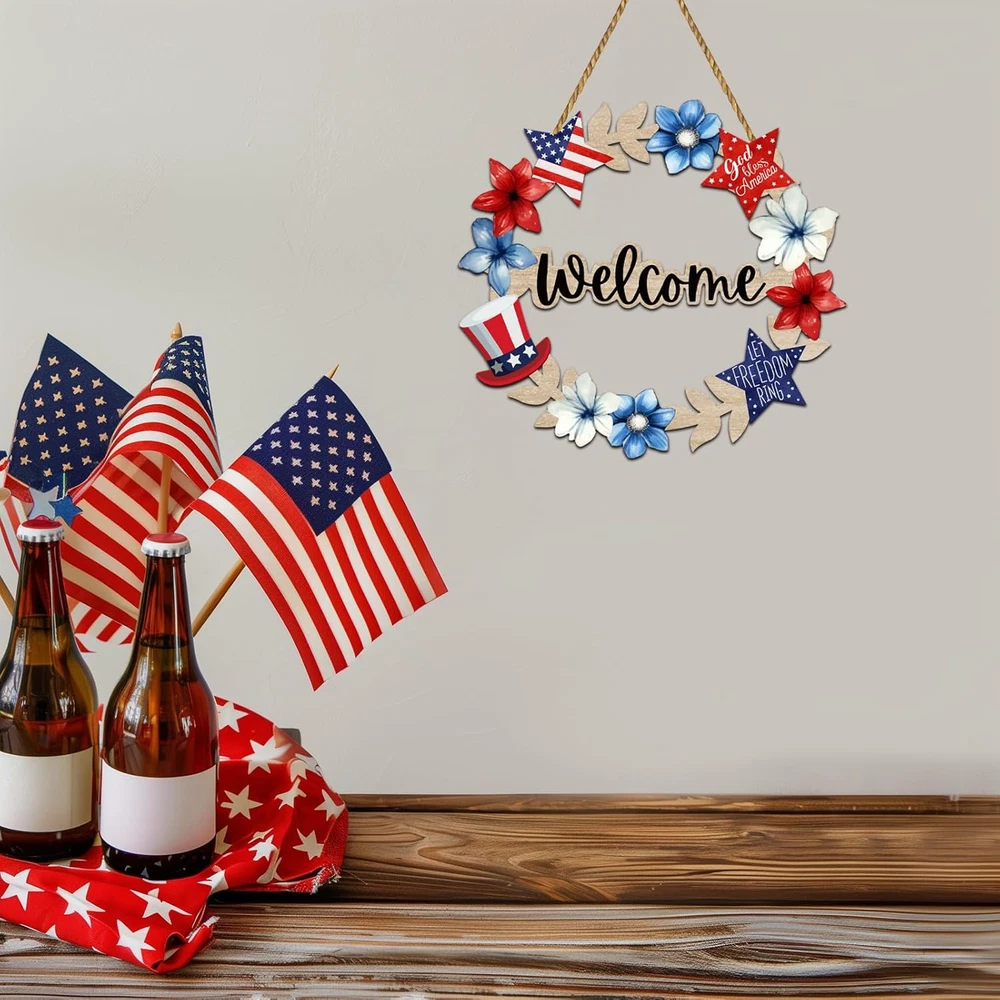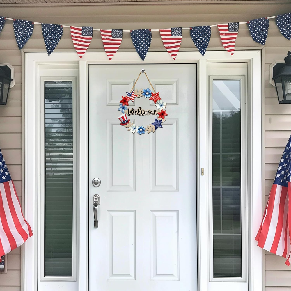Absolutely love this rustic wooden wreath! The perfect blend of red, white, and blue adds a festive touch to my front door. Lightweight yet sturdy, it's easy to hang and looks fantastic for Fourth of July and Memorial Day. The pre-printed "Welcome" message is a charming detail—highly recommend for anyone wanting patriotic porch decor!