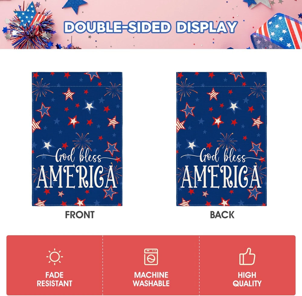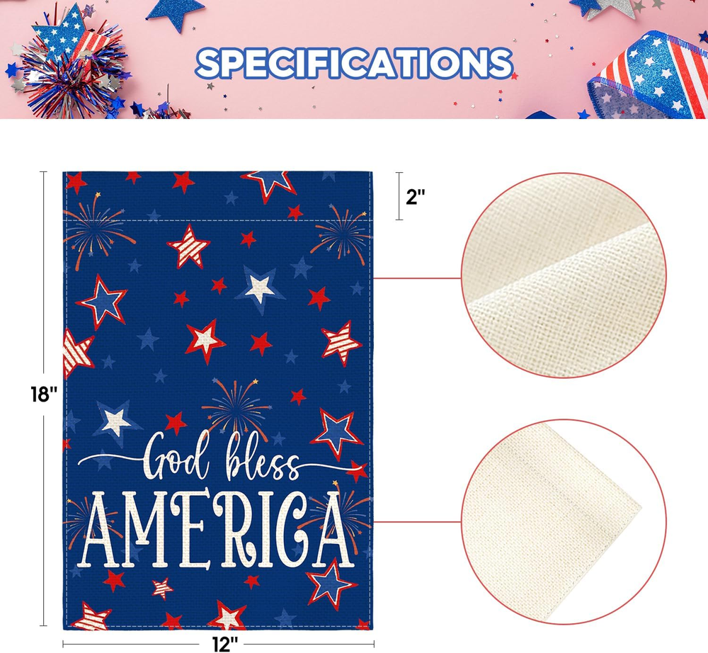 This patriotic garden flag is a fantastic way to show your American pride! The double-sided design looks vibrant, and the durable spun polyester holds up well outdoors. Perfect for 4th of July or year-round, it adds a festive touch to any yard. The stitching is strong, and the colors stay bright even after washing. A great buy for anyone who loves patriotic decor!