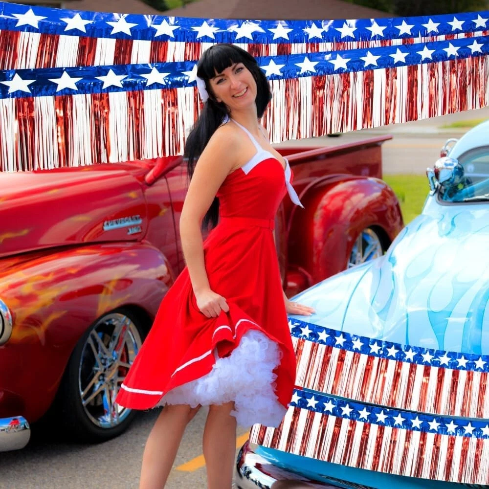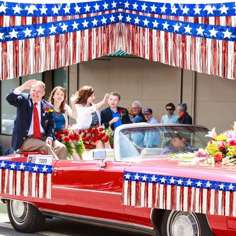 These patriotic garlands are a total game-changer for any 4th of July party! The vibrant red, white, and blue tinsel looks amazing hanging from ceilings, walls, or parade floats—super festive and eye-catching. The foil fringe catches the light beautifully, making everything feel more lively. Super easy to set up, and the 40-foot total length gives plenty to work with. Perfect for Memorial Day too! Loved how they instantly transformed my space into a patriotic celebration.