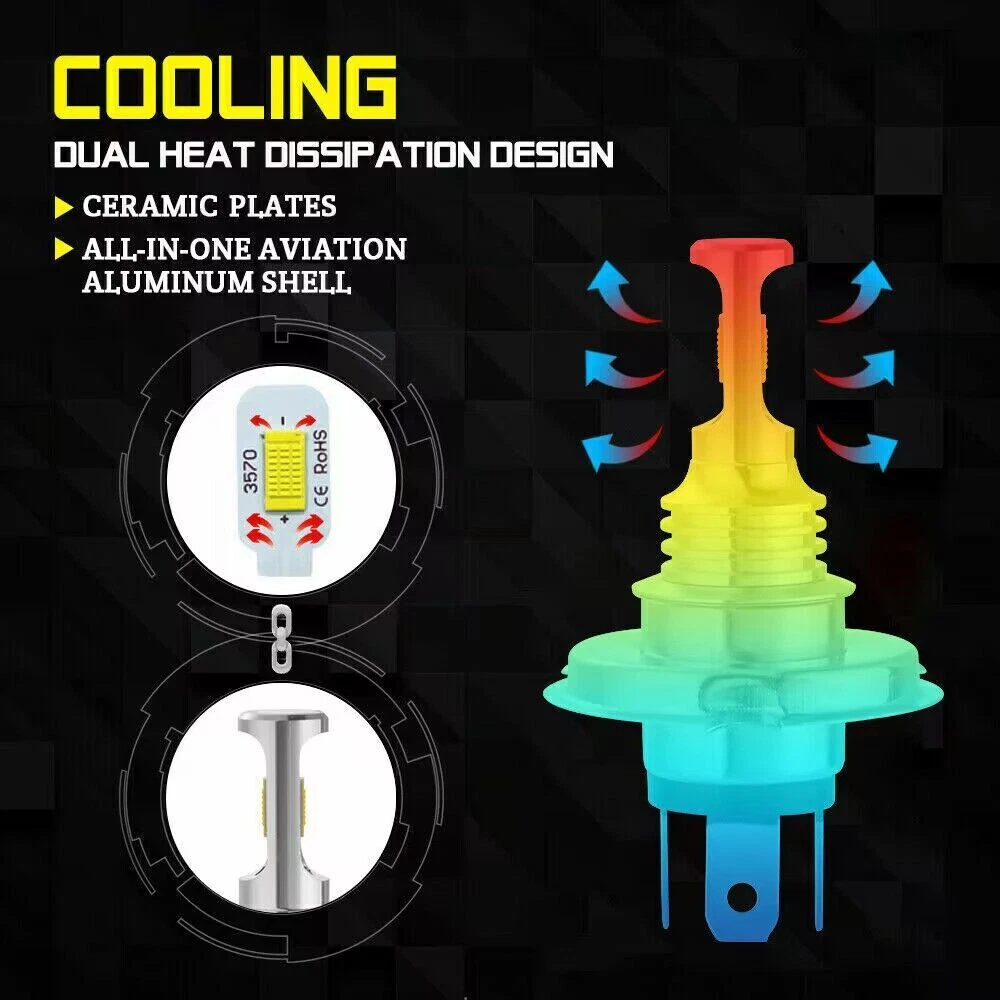 5-3/4"5.75 Round Stock Style H4 Conversion Headlights with Super Bright White LED Light Bulbs. Keep the Classic Look with Modern Light Brightness! Plug And Play! This listing is for a new set of 5 3/4" stock style glass lens - metal back headlight bulbs. This set includes (4) low/high beam headlights with high intensity LED light bulbs (no wiring or bucket modification needed). These have the original shaped prongs on the back so they will plug right into your original wiring harness plugs. These will fit any car or truck that has 4 round glass headlights. Will fit into stock buckets. Each bulb is 5 3/4 inches in diameter. These are glass and we will take extra care in packaging. DOT SAE approved Set Of 4 - 5-3/4" Stock Headlights w/ Led Bulbs Stock Style Glass Lens / Metal Backside 6000K High Intensity Led Bulbs (4) Low/High Beam Headlights Fits Directly Into Stock Buckets No Modifications Needed - Plug And Play Part Number Interchange: H5006 / H5001 Or 4000 / 5001 DOT / SAE Approved LED LIGHT BULB Specifications and Features: Bulb Size: 9003 / H4 / HB2 Application: Headlight High Beam And Low Beam LED replacement bulbs are engineered for superior performance, exceptional looks, and increased safety. 3570 CSP LED chip high power 100W per bulb Color Temperature: 6000K White Lumens: 6000 lumens per bulb,no blind zone Working Voltage: DC 9-32V ( Fit 12V,24V Vehicle ) No delay to light up, Faster on/off response time Lifespan: 50,000 working hours, stable quality, long service life Aluminum heat sink design,built-in automotive circuit to prevent electronic interference. The model is the same as factory light, no need to change car wire rute,just Plug and Play, NO modification required Energy saving, environmental protection, Stable performance, through strict test, Use safer driving in the car High quality Aluminum heat sink ensures proper temperature regulation. Lower Power Consumption than bulb. Vibration proof design. 50,000 Hour Lifespan Easy installation, Plug and Play, No modification required Material: ABS Housing, PC Lens Uses 55% less power than or HID bulbs 2 times brighter than stock bulbs OBC Error free operation Dramatically improves visibility at night Interchange: H5006 / H5001 or 4000 / 5001 Package Included: 4pcs 5-3/4" headlight Housing 4pcs H4 led Bulbs 4X H4/9003 to H13/9008 Connectors Cable Adapters Harness Note: Without mounting bracket, some models may need mounting bracket! After service Notification: If you are satisfied with our product and service please leave us a positive feedback,if there is any problem when you received the package,please feel free to contact us,we will be definitely give you a satisfying solution,when you choose the return reason .please choose the reason"i don't like it". by this option we will accept your return immediately and provide return label for full refund. the others reason to return will take both of us many troubles to handle. If you have any questions, please feel free to contact us, we are happy to answer them for you. Hope you will have a good shopping experience~