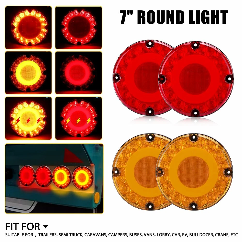 Fit for: Suitable for truck, trailers, semi truck, caravans, campers, buses, vans, lorry, car, rv, bulldozer, crane, etc Specifications: Product Material: ABS+PC Light Color: Red,Amber Voltage: 12-24V LED Quantity: 36/1pcs Size: 7inch round Functions: Brake light, tail light, turn signals, etc Wiring Mode: Black wire: Negative Red wire: Red light on the outer ring of running light Yellow wire: Red light in the inner circle of the brake light Blue wire: Flashing red light Waterproof Grade: IP67 Lifespan: 50,000h+ Features: *High Brightness 4x Red/Amber 7inch Round LED Trailer Truck Bus Tail Light Stop Turn Signal DRL M Fit for: Suitable for truck, trailers, semi truck, caravans, campers, buses, vans, lorry, car, rv, bulldozer, crane, etc Specifications: Product Material: ABS+PC Light Color: Red,Amber Voltage: 12-24V LED Quantity: 36/1pcs Size: 7inch round Functions: Brake light, tail light, turn signals, etc Wiring Mode: Black wire: Negative Red wire: Red light on the outer ring of running light Yellow wire: Red light in the inner circle of the brake light Blue wire: Flashing red light Waterproof Grade: IP67 Lifespan: 50,000h+ Features: *High Brightness Each LED tail light bright enough and energy-saving. *Superior Quality Made of high quality material to ensure its low energy consumption, good waterproof and shock resistance. *Waterproof: The tail light has IP67 waterproof rating, which works even under extreme conditions such as rain and snow. *Wide Application This pair of LED tail lights can be used in truck, trailers, semi truck, caravans, campers, buses, vans, lorry, car, RV, bulldozer, crane, etc. It also can be used as brake light, daytime running light, tail light, turn signal light, etc. *Warm Notice Please check the detail information of the product carefully before purchasing. Your satisfaction is our utmost concern, please feel free to contact us for any questions and concerns. Package Included: LED tail lights *4 (2x Amber +2x Red) ABOUT US 4x Red/Amber 7inch Round LED Trailer Truck Bus Tail Light Stop Turn Signal DRL M Fit for: Suitable for truck, trailers, semi truck, caravans, campers, buses, vans, lorry, car, rv, bulldozer, crane, etc Specifications: Product Material: ABS+PC Light Color: Red,Amber Voltage: 12-24V LED Quantity: 36/1pcs Size: 7inch round Functions: Brake light, tail light, turn signals, etc Wiring Mode: Black wire: Negative Red wire: Red light on the outer ring of running light Yellow wire: Red light in the inner circle of the brake light Blue wire: Flashing red light Waterproof Grade: IP67 Lifespan: 50,000h+ Features: *High Brightness Each LED tail light bright enough and energy-saving. *Superior Quality Made of high quality material to ensure its low energy consumption, good waterproof and shock resistance. *Waterproof: The tail light has IP67 waterproof rating, which works even under extreme conditions such as rain and snow. *Wide Application This pair of LED tail lights can be used in truck, trailers, semi truck, caravans, campers, buses, vans, lorry, car, RV, bulldozer, crane, etc. It also can be used as brake light, daytime running light, tail light, turn signal light, etc. *Warm Notice Please check the detail information of the product carefully before purchasing. Your satisfaction is our utmost concern, please feel free to contact us for any questions and concerns. Package Included: LED tail lights *4 (2x Amber +2x Red) FAQ Shipping Returns Contact Us Payment Why swith to LED? LEDs not only give your vehicle a clean, modern look but, with proper use, will outlast any halogen bulb and HID bulb! Low energy draw, high lumen output, and instant on/off LED technology out shines stock bulbs in every way. Which bulbs are used in my vehicle? Check Sylvania automotive lamp replacemnt guide , you can select the year, make, and model of your vehicle, then select the application you want to replace or upgrade from stock. What does CAN Bus mean? CAN Bus means Controller Area Network Bus. This system monitors your vehicle and reports operating conditions. CAN Bus systems are commonly found in European vehicles such as BMW, Audi, Mercedes, Volkswagen, Porsche, and in many American vehicles. While most late model American vehicles have CAN Bus systems, it is always good to check with your vehicle dealer to see which system your vehicle has before purchasing electrical products. When do you need Warning Canceller? Some vehicles with cmplex internal computers(such as Audi,BMW,Jaguar,Mercedes,etc.) might report on-dash errors or flickering on the headlights. The warning canceller fixes the dashboard warning and flickering effect. Bulb Out Dashboard Error: On some vehicles, the dashboard will report as if you have a headlight bulb missing or burnt. It does not affect the headlights functioning, but the light on-dash will be on. The warning canceller fixes the issue. Flickering Issue: This happens when your vehicle does not recognize the new headlights installed. When turning the headlights on, the vehicle's computer does not understand the signal back from the headlights hence thinking they are still off. This triggers the headlight flickering effect. The warning canceller solves this issue. LED Advantages: Very low and efficient energy consumption than halogen bulbs & HID Bulbs Compared with HID bulbs, LED bulbs Light up instantly, no warm up period Low voltage protection, high precision constant current driver chip Longer lifespan than HID and halogen bulbs Light can be controlled easily in color and intensity Easy to install a LED headlight conversion kit (1) We will ship your item(s) within 24 hours. (2) We ship this item to US only via USPS first class mail. It usually takes 3-6 working days to deliver. How Long Will It Take to Receive My Refund? If you have emailed us for a refund ,once we have approved it ,after 60 days your money will be refunded. The estimated time for the refund to appear in your account is based on the payment method you use. Paypal is the 