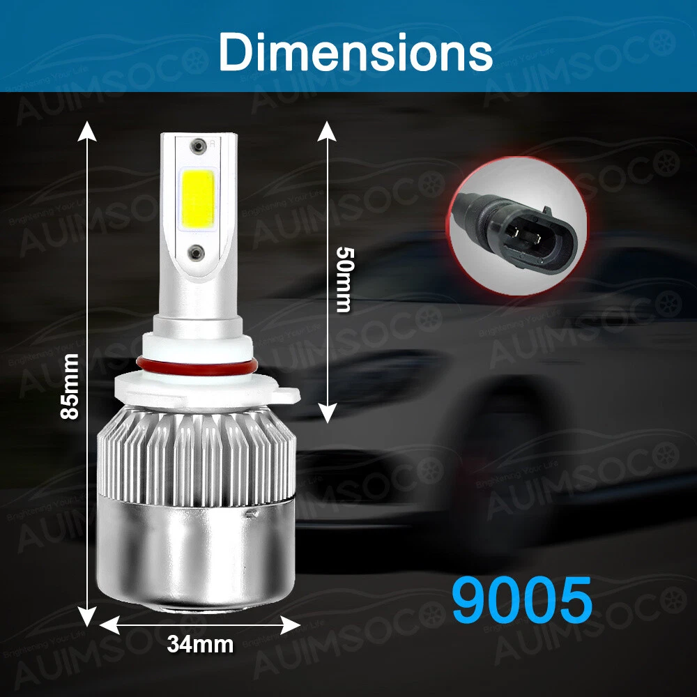 HOME PAYMENT SHIPPING ABOUT US CONTACT US Detail AUIMSOCO Authorized Store on eBay C6 Series Cold White LED Headlight Bulb Conversion Kit 1 x Pair 9005 Headlight Replace Halogen High Beam 1 x Pair 9006 Headlight Replace Halogen Low Beam LED Headlight Bulb: Bulb Size: 9005 9006 Plug Type: High Beam / Low Beam Color Temperature: 6000K -Cold White Headlight Wattage: 40 W/Per Pair Headlight Lumens: 4000LM / Per Pair Working Voltage: DC 9V to 36V Waterproof Level: IP68 Material: Aluminum alloy Lifespan: > 50,000 Hours Usage: Headlight Feature: 1.High speed mute fan(12000R/Min), high Air flow for faster cooling rate, keep the light bulb in appropriate working temperature. 2.Instant response, reaches highest output in less than 0.01 second. 3.Aluminum heat sink design,Efficient Heat Dissipation, Enhance Lighting Efficiency 4.Low Voltage Protection, High Precision Constant Current Driver Chip 5.60% Less Power Consumption 6.Easy Plug and Play Installation Package Include 2 x 9005 LED High Beam headlight bulbs 2 x 9006 LED Low Beam headlight bulbs Randomly send new and old packaging boxes Need Canbus decoder/ resistor? The C6 series LED bulbs can work well on most vehicles. But when it's changed to LEDs to cause the flickering or error code on your vehicle, you will need one pair of the decoder to cancel the error. AUIMSOCO Warranty & Return: 1 Year Warranty. (If any quality problem we'll send free for replacement) Free return and free return shipping label can be provided if needed (contact us). Please refer to our return policy for details. Shipping Policy Payment Method Returns Policy Shipping Policy We will deliver the goods to you through USPS, which will take about 3-6 working days. You can track it online. Payment Method 1. You can use a variety of payment methods such as credit, debit, and gift cards, Apple Pay, Google Pay, PayPal, and PayPal Credit. 2. Items will be shipped to your eBay address. Please make sure it is correct. 3. Payment must be received 4 days after auction ended. Returns Policy If product is defective or damage upon arrival, or wrong product shipped, please contact us immediately. Returns accepted within 30 days of delivery date and item must be in original new condition, not worn or altered in any way with attached tags & wrap. Otherwise deal is final. Return shipping must be paid by buyer. HOME PAYMENT SHIPPING ABOUT US CONTACT US HOME PAYMENT SHIPPING ABOUT US CONTACT US Store Categories Store Categories For Ford For Chevy For GMC For Honda For Toyata For Dodge For Nissa Detail AUIMSOCO Authorized Store on eBay C6 Series Cold White LED Headlight Bulb Conversion Kit 1 x Pair 9005 Headlight Replace Halogen High Beam 1 x Pair 9006 Headlight Replace Halogen Low Beam LED Headlight Bulb: Bulb Size: 9005 9006 Plug Type: High Beam / Low Beam Color Temperature: 6000K -Cold White Headlight Wattage: 40 W/Per Pair Headlight Lumens: 4000LM / Per Pair Working Voltage: DC 9V to 36V Waterproof Level: IP68 Material: Aluminum alloy Lifespan: > 50,000 Hours Usage: Headlight Feature: 1.High speed mute fan(12000R/Min), high Air flow for faster cooling rate, keep the light bulb in appropriate working temperature. 2.Instant response, reaches highest output in less than 0.01 second. 3.Aluminum heat sink design,Efficient Heat Dissipation, Enhance Lighting Efficiency 4.Low Voltage Protection, High Precision Constant Current Driver Chip 5.60% Less Power Consumption 6.Easy Plug and Play Installation Package Include 2 x 9005 LED High Beam headlight bulbs 2 x 9006 LED Low Beam headlight bulbs Randomly send new and old packaging boxes Need Canbus decoder/ resistor? The C6 series LED bulbs can work well on most vehicles. But when it's changed to LEDs to cause the flickering or error code on your vehicle, you will need one pair of the decoder to cancel the error. AUIMSOCO Warranty & Return: 1 Year Warranty. (If any quality problem we'll send free for replacement) Free return and free return shipping label can be provided if needed (contact us). Please refer to our return policy for details. Shipping Policy Payment Method Returns Policy Shipping Policy We will deliver the goods to you through USPS, which will take about 3-6 working days. You can track it online. Payment Method 1. You can use a variety of payment methods such as credit, debit, and gift cards, Apple Pay, Google Pay, PayPal, and PayPal Credit. 2. Items will be shipped to your eBay address. Please make sure it is correct. 3. Payment must be received 4 days after auction ended. Returns Policy If product is defective or damage upon arrival, or wrong product shipped, please contact us immediately. Returns accepted within 30 days of delivery date and item must be in original new condition, not worn or altered in any way with attached tags & wrap. Otherwise deal is final. Return shipping must be paid by buyer.