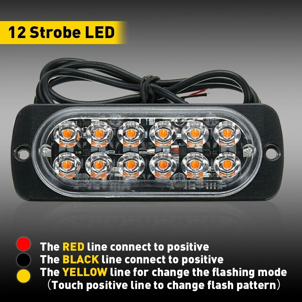 4x Amber 12LED Strobe Light Car Truck Beacon Flash Bright Hazard Waterproof Boat