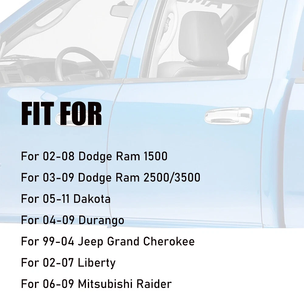 22inch LED Light Bar Spot Flood Combo + Wiring Kit For Jeep Truck SUV ATV Lamp 11.37 USD 11.97 USD 1.99 USD 5% off 2PCS LED Motorcycle ATV Headlight Yellow White Hi/Lo Spot Light Driving Fog Lamp 11.99 USD 0.99 USD 2PCS For 2011-2012 Jeep Grand Cherokee 4 Inch Round Fog Lights LED Lamps Drivimg 23.69 USD Free shipping 4PCS 7 inch Round LED Lights Pods Bar Flood Spot Driving Lamps SUV Offroad Truck 47.49 USD 49.99 USD Free shipping 5% off Pair 4X6'' Inch LED Driving LED Work Light Bar Spot Fog Lights For Jeep Truck 25.64 USD 26.99 USD Free shipping 5% off Pair Inner Door Handle Trim Panel Pull Cover For BMW 3 4 Series F30 F35 2012-18 12.5 USD Free shipping Outdoor Full Car Cover Waterproof All Weather Protective Anti-UV Dust Snow XXL 29.5 USD 2.99 USD 1/2/4x 7 Inch Round LED Work Light Bar Pods Driving Fog Headlight Truck Off Road 17.98 USD Free shipping Car Wash Brush 64-inch Car Cleaning Brush with 10-inch Soft Bristle Head for Car 25.99 USD 4.99 USD 2X 8'' Slim LED Work Light Bar Dual Row Spot Flood Offroad Driving ATV 4X4WD SUV 23.99 USD Free shipping 22inch Slim LED Light Bar Spot Flood Combo + 4" Pods Offroad For Jeep Truck SUV 33.99 USD 0.99 USD 2x 3inch LED Work Light Bar Spot Pods Driving Fog Lamp Offroad ATV UTV Boat 4WD 26.58 USD 27.98 USD Free shipping 5% off 2PCS For Toyota Corolla 2014-2019 Front Wiper Side Cowl Extension Cover Trim USA 6.99 USD Free shipping Bungee Cargo Net Stretch 4'x4' to 7'x7' for Trailer Pickup Truck Rooftop Black 24.98 USD Free shipping 20" inch Slim LED Light Bar Spot Flood Combo Work Offroad SUV Driving Lamp ATV 19.94 USD 20.99 USD Free shipping 5% off Air Train Horn 110DB Black Semi Truck Car Boat 12v/24v 4 Loud Trumpet For Truck 33.5 USD Free shipping SAFE & SECURE SHOPPING SATISFACTION GUARANTEED FAST SHIPPING Store Categories Store Categories Other Auto & motorcycle parts Headlamp & Flashlight Camping & Hiking Hunting Equipment Cycling Equipment 3C Tools Promotion Hot Sales!!! Cars & Motorcycle Accessories Electronic Product Car Light You may also like 4x CHROME Door Handle +Tailgate Covers Kits For 02-08 Dodge Ram 1500 2500 3500 Product Description F eatures: GOOD MATERIAL : The Car Door Handle Cover Trim Is Made Of Quality Abs Material, Which Has High Reliability, Anti-Corrosion, Wear Resistant, Light Weight, Not Easy To Break Or Crack, Lasting In Use. UNIQUE DESIGN : The Car Door Handle Cover Has Exquisite Workmanship, Be Dependable For Use And Convenient For Assembly And Disassemble, Its Stylish Design, Enhance More Elegant Element To Your Car. PROTECT YOUR CAR : It Covers Existing Scratches And Protects Your Door Handles And Knobs From Nails, Key Scratches And More. Decorate Your Doors And Make Your Car Stand Out. ORIGINAL R EPLACEMENT: This Product Is Made With The Original Data, In Line With Your Car, Direct Installation Does Not Need To Be Modified, Convenient And Save Your Time. INTIMATE SERVICE : Any Problems You Have, Please No Hesitate To Contact Us, We’Re Always Here To Help You And Response To You Within 24 Hours. Specifications: Item Name: Door Handle + Tailgate C over Kits Material: ABS Color: Chrome Position: Front,Left Side,Front,Right Side,Tailgate Package Weight: 40 0 g F IT FOR For 02-08 Dodge Ram 1500 For 03-09 Dodge Ram 2500/3500 For 05-11 Dakota For 04-09 Durango For 99-04 Jeep Grand Cherokee For 02-07 Liberty For 06-09 Mitsubishi Raider Package Included: 4 x Door Ha ndle C over 1 x Tailgate Cover Notes: * WITHOUT passenger side keyhole. * These are stick-on overlays which will place on top of the existing handles, not direct door handle replacements. * Due to the light and screen setting difference, the item's color may be slightly different from the pictures. * Please allow slight dimension difference due to different manual measurement. Payment Shipping Returns Contact Us Payment 1. This is the payment method we can accept: Paypal 2. You can checkout and pay immediately after the auction ends or you complete the purchases. If you need an eBay invoice sent to you by Email, please contact us before making payments. 3. Once the checkout is completed, you will not be able to include any additional purchases. We start to process and fulfill your order once payment is received. New purchases after the checkout will be processed separately. 4. Payments are expected within 4 days after the order is confirmed. Unpaid item (UPI) strike may be filed with eBay upon non-receipt of payment. Shipping 1. How much is the shipping & handling (S&H)? Our shipping and handling charges are clearly stated in the Shipping and Payments section of the item page, and we provide Free Shipping for most items. 2. For multiple purchases, the combine shipping discount will be automatically calculated when you check out and pay all of your purchases together. Items checked out separately may not be combined and the combine shipping discount will not be offered automatically. 3. Please make sure the correct Ship-To address is entered before checking out. Once the payment is completed, you may not be able to change the shipping address. We shall not be held responsible for any wrong or undeliverable addresses. 4. We usually ship within 1-2 business days of receiving cleared payment. Returns 1. We put buyer's satisfaction at top priority. If you're not pleased with your purchases, we'll be happy to make an exchange or refund the item total price less Shipping and Handling (S&H) charges within 30 days of your purchases. 2. For any Exchange, Refund or Return, the item must be in its original condition, including the box, packaging, and all the accessories or gifts. 3. We'll provide prepaid return shipping label if the return is a result of our error. Postage reimbursement is offered only on standard mails, and it needs to be approved by our staff prior to returning. 4. Please allow up to 7 business days for returns to be processed. 5. Shipping and Handling (S&H) charges are not refundable. Contact Us 1. Customer satisfaction is very important to us and o