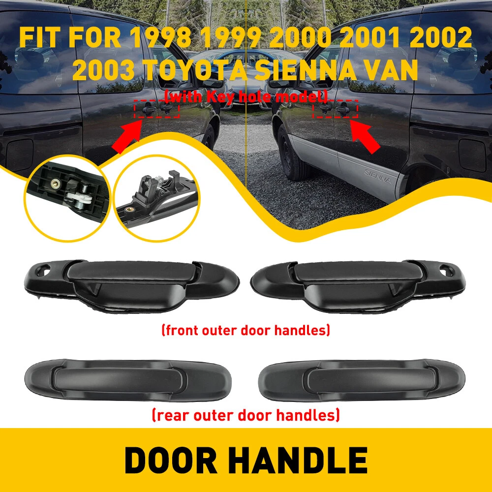 Part Number: 69220-08010-A0, 6922008010A0 69210-08010-C0, 6921008010C0 69230-08010-C0, 6923008010C0 69230-08020-C0, 6923008020C0 Position: Front Left (Driver) Side With Keyhole Front Right (Passenger) Side With Keyhole Rear Left (Driver) Side Without Keyhole Rear Right (Passenger) Side Without Keyhole Fitment: 1998 1999 2000 2001 2002 2003 Toyota Sienna Van Description: 100% Brand New Door Handle. High quality material, best performance and reliability. Without modification, direct replacement. Based on the same original-equipment designs. Color:Black 4x Door Handle Front + Rear Sliding Door Left &Right for 1998-2003 Toyota Sienna Part Number: 69220-08010-A0, 6922008010A0 69210-08010-C0, 6921008010C0 69230-08010-C0, 6923008010C0 69230-08020-C0, 6923008020C0 Position: Front Left (Driver) Side With Keyhole Front Right (Passenger) Side With Keyhole Rear Left (Driver) Side Without Keyhole Rear Right (Passenger) Side Without Keyhole Fitment: 1998 1999 2000 2001 2002 2003 Toyota Sienna Van Description: 100% Brand New Door Handle. High quality material, best performance and reliability. Without modification, direct replacement. Based on the same original-equipment designs. Color: Black Position: Front Right&Front Left&Rear Right&Rear Left Package included: 4x Exterior Door Handle Warranty: limited 5 years warranty - free one time replacement. Compatibility info provided only for US models. Discount shipping on multiple items, please contact us for details. Please make sure that your vehicles specifications matches our ebay Compatibility. Item Specifics Features Easy Installation Manufacturer Warranty 5 Year OE/OEM Part Number 69220-08010 69210-08010 69230-08020 Number of Pieces 4 Fitment Type Direct Replacement Material Plastic UPC Does Not Apply Attachment Type Clips Shape Bar Interchange Part Number 69220-08010-A0 6922008010A0 Interchange Part Number 2 69230-08010-C0, 6923008010C0 Placement on Vehicle Front Rear Left Right Front Left Rear Left Front Right Rear Right Finish Painted Interchange Part Number 1 69210-08010-C0, 6921008010C0 Manufacturer Part Number MBS-WM-sienna-98-03 Brand Unbranded Color Black Part Brand unbrand Type Door Handle Shape Bar FAQ ♥ If you have a decoding problem or any other problems, please contact us first, we will help you with it. We will reply you within 24 hours in working days. I'm a new seller, thanks a lot for your trust and convince! I will serve you with all my heart. ♥ Q1: Will this bulb fit my vehicle? A: We can match almost any vehicle to one of our bulb sizes. eBay only lets us include some vehicle fitments per listing, but if your vehicle does not show up on the compatibility table at the top of our listings, welcome you to contact us for free consulation before purchasing a product. Q2: My item has not arrived, what's taking so long? A: Sometimes items take longer than expected, especially if it’s going far or to rural area. Check with your post office to see if your item has been held up. Sometimes Royal Mail will not update a tracking number until it has arrived at its destination. If your item still don't arrive after a few days, let us know so we can double check for you and help solve it asap. Q3: My bulbs won't fit, help! A: Special bulb holder may be required. See if you can take the holder from the stock bulb. If not, let us know. The bulb size may be wrong, double check the item you received with the item you ordered. Do you have an aftermarket lighting housing? These may not be perfectly fitted for aftermarket bulbs and will require some manual modifications. Q4: Neither side lighting up? Both sides flicker, hyper flash, or work inconsistantly. A:Check the light fuses, and then check the ballast plugs to insure correct installation. If this doesn't work, there may be a voltage problem with the vehicle. You probably just need a relay or capacitor. Even though some bulbs are builtin resistors, they may still need a decoder. Pay & Ship (1). We gladly accepts payment via PayPal, We will ship your item(s) within 24 hours. (2). Before payment, please keep the consistency of Paypal address and ebay address. (3). Quantity orders are welcome! Returns (1). We offer 60 days free return policy. Please contact us within 60 days from the date you receive your order if you have any issues with the product or want return. Refund will be send after we got your resend package. (2). All returned items should be in the original packaging , return tracking information should be provided . Contact Us (1).Negative feedback will not help resolve any problems you have, please contact us via eBay messages before leaving negative feedback , our customer service will make best effort to help you with the issues. (2).We maintain high standards of excellenceand strive for 100% customer satisfaction! Feedback is very important to us. We request that you contact us immediately before you give us neutral or negative feedback, so that we can satisfactorily address your concerns. About us We're professional in car and motorcycle accessories, especially in LED bulbs. We have our own factory and R&D team. Our belief is to sell top quality items that fit your car and serve you with our heart. Anything please feel free to contact us! Our customer service is very responsibility. Come and follow us! DESCRIPTION NEW ARRIVED HOT SALE CONTACT US SAVE US Store Category Store Home Other Hot Item Door Handle Outside Rear Driver/Passenger Side For 2012-2017 Toyota Camry USD 14.99 Rear Left or Right Outside Door Handle for 2010-2016 Toyota 4Runner Lexus GX460 USD 14.99 Inner Interior Inside Door Handle Black Chrome Lever Front Left Right Set of 2 USD 18.99 Tailgate Handle For 2001-2004 Nissan Tail Gate Bezel Lock Rear Back Liftgate USD 36.99 For 2004-2012 Chevrolet Colorado Door Handle Exterior Outside Front Driver Side USD 13.99 New List Item Rear Passenger RH Side Exterior Door Handle for 2017-2020 Hyundai Elantra Sedan USD 15.99 For 2009-2019 Nissan Sentra/Maxima/Murano/Leaf 4X O