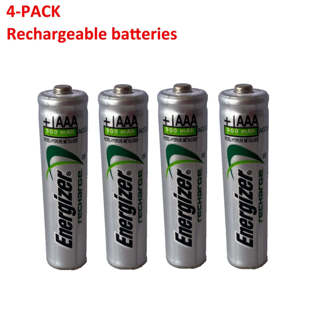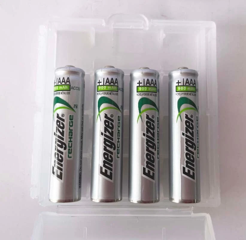 Brand name Type Rechargeable NiMH Battery Size AAA Capacity 900 mAh Voltage 1.2 V Dimensions 10.5 mm x 44.5 mm Quantity 4 batteries (1 retail package) Rechargeable YES Best uses Everyday devices such as Digital cameras, torches, LED lights, CD/MP3 players, toys, games controllers Equivalent to HR03, LR03, MN2400, MICRO, 24A, 24AC, 4003, 824, AM4, E92, K3A, FR03, ND61R, R03 Country of Manufacture Japan Additional information 6 x longer lasting power than Alkaline batteries. Made with 4% recycled batteries. Pre-Charged: ready to use straight from the pack.