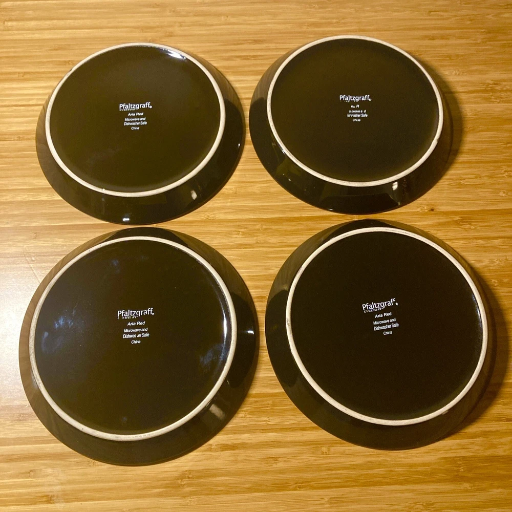 4x Pfaltzgraff Studio ARIA RED 3 Color Stoneware Salad Plate Set 7.75”. Condition is Used. Shipped with USPS Ground Advantage.
