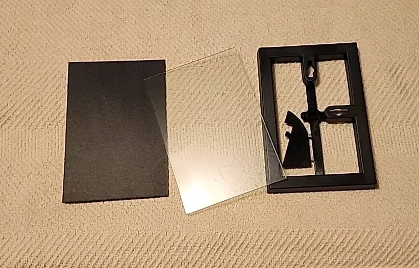 Photo Frames, 4x6, Black, Format Frame By MCS. Basic modern frames, excellent condition. The frames have a smooth black backing for the photo, the bubbly appearance is a reflection of the ceiling which I couldn't get away from. I placed a photo backwards in one to show the frame itself.