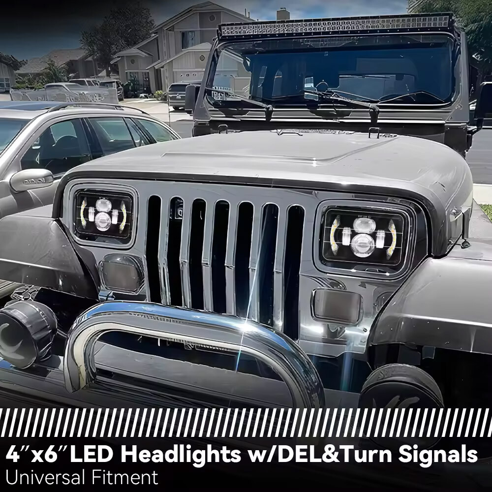 4PCS 4" x 6" CSP Square LED headlight Reflector 500W 50000LM Note: If your original headlight socket is H4 but Not standard, you need h4 9003 to 3 pin adapter to make the light work. Features: * Light effect.High quality, high brightness. * 4" x 6" Led headlight.keep your adventure going with an enhanced lighting system that canlight up the road up to 150yds ahead. * IP67 Waterproof.Protected from outside elements, sealed beam housing, all weather design. * Effecient heat dissipation. durable die-cast aluminum housing ,oversized grooved geat sink fins extended heat dissipation surface,which dissipate heat in no time. * Fast and effectively cool down the heat. * Easy installation, just plug & play. * Faster on/off response time and vibration resistant. * Environmental-friendly: energy saving, no UV and IR radiation, shock-proof and anti-corrosion. Specifications: Light Source: DV-CSP Power / set: 100W * 2 Lumens / Pair: 6000LM* 2 Type of reflection: reflector With / without Ring (DRL): with Housing Meterial: Die-cast aluminum housing Beam pattern: spotlight Light color: White,Amber Beam Pattern: High Beam/Low Beam/Day Running Light/Turn Signal Beam Color temperature: 6000K Lifetime: 50000 hours Housing color: Black transparent configuration: three rows With / Without Wiring Harness: Without With / Without RGB Control: Without Waterproof rate: IP68 Light Type: driving light, fog lights Shape: straight Input voltage: 9-80V Working temperature: -40 + 85 ° C Size: 4"X6" Installation location: front, left, right Fitment: Fit for 1978-1983 American Motors Concord, Fit for 1980-1988 American Motors Eagl, Fit for 1979-1983 American Motors Spirit Fit for 1975-1990 Buick Electra, Fit for 1976-1986 Buick LeSabre, Fit for 1982-1987 Buick Regal, Fit for 1975-1985 Buick Riviera Fit for 1975-1985 Cadillac Eldorado, Fit for 1975-1985 Cadillac Seville Fit for 1982-1992 Chevrolet Camaro, Fit for 1982-1987 Chevrolet Cavalier, Fit for 1982-1987 Chevrolet El Camino, Fit for 1980-1988 Chevrolet Monte Carlo Fit for 1979-1986 Ford Mustang, Fit for 1993-1997 Ford Probe Fit for 1980-1986 Nissan 720, Fit for 1982-1984 Nissan Maxima Fit for 1977-1990 Oldsmobile 98, Fit for 1985-1987 Oldsmobile Calais, Fit for 1980-1991 Oldsmobile Cutlass Calais, Fit for 1982-1996 Oldsmobile Cutlass Ciera, Fit for 1980-1995 Oldsmobile Cutlass Cruiser, Fit for 1980-1987 Oldsmobile Cutlass Salon, Fit for 1980-1988 Oldsmobile Cutlass Suprem, Fit for 1977-1991 Oldsmobile Delta 88 Fit for 1977-1981 Pontiac Firebird, Fit for 1976-1987 Pontiac Grand Prix Fit for 1985-1989 Subaru DL, Fit for 1985-1989 Subaru GL, Fit for 1985-1989 Subaru GL-10 Fit for 1981-1984 Toyota Cressida, Fit for 1980-1984 Jetta,1982-1986 Quantum Fit for FREIGHTLINER FLD120 112 FLD Fit for Peterbilt Rectangular Headlights 379 378 357 Fit for Kenworth T800 T400 T600 W900B W900L Classic 120/132 HK Classic Compatible with headlights: Fit for H4651 H4652 H4656 H4666 H6545 H4668 Fit for Ford Models with 4" x 6"stock headlight Fit for Ford F-550 Super Duty, Fit for Ford F-450 Super Duty, Fit for Ford F-350 Super Duty, Fit for Ford F-250 Super Duty, Fit for Ford F-250, Fit for Ford F-150, Fit for Ford E-450 Super Duty, Fit for Ford E-350 Super Duty,Fit for Ford E-350 Econoline Club Wagon,Fit for Ford E-350 Econoline, Fit for Ford E-350 Club Wagon, Fit for Ford E-250, Fit for Ford E-150 Econoline Club Wagon, Fit for Ford E-150 Econoline, Fit for Ford E-150 Fit for Chevrolet Models with 4" X 6" stock headlights Fit for Chevrolet Express 3500, Chevrolet Express 2500,Chevrolet Fit for Express 1500, Fit for Chevrolet Astro Fit for 82-94 Chevy S10 Pickup Fit for Toyota Pickup,Fit for Toyota MR2,Fit for Toyota Celica,Fit for Toyota Supra,Fit for Nissan 240SX Any other car H6054 H6014 H6054LL 69822 6052 6053 with 4"x6” Rectangular Headlight Package Included: 4x 4" x 6" Square LED headlights
