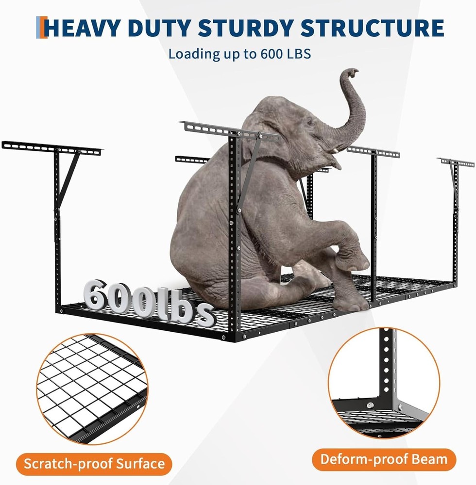 4x8ft Heavy Duty Adjustable Ceiling Mount Garage Storage Rack