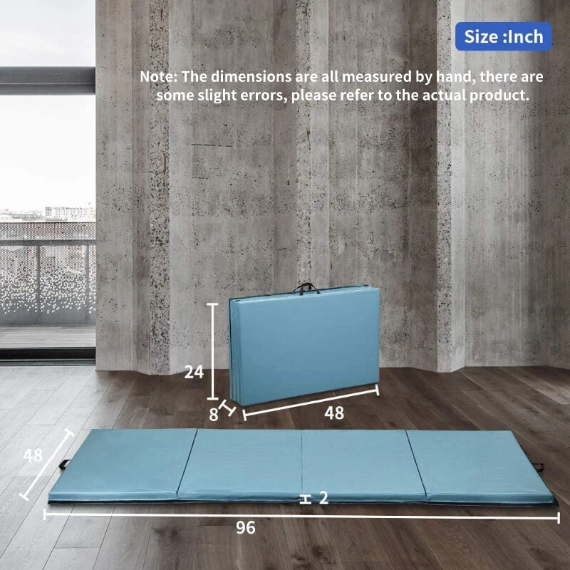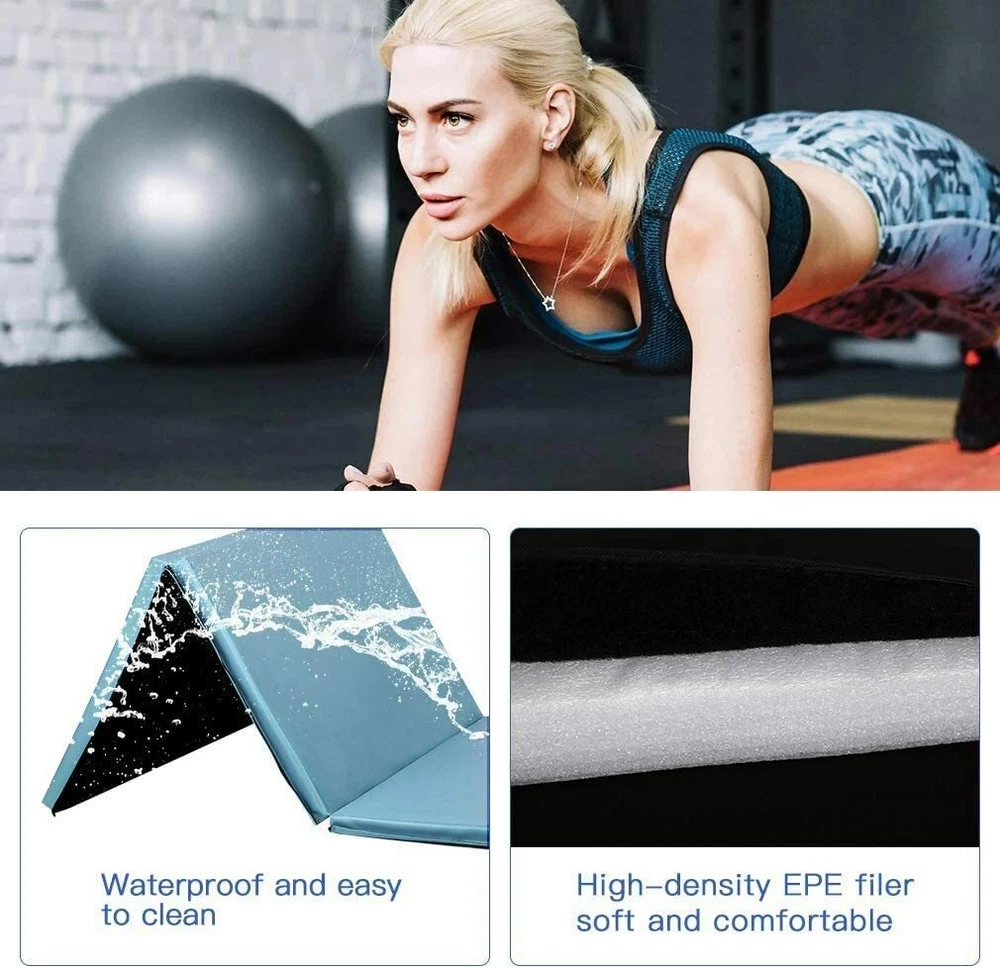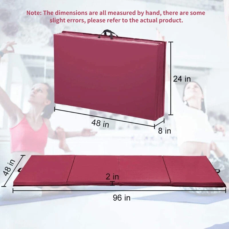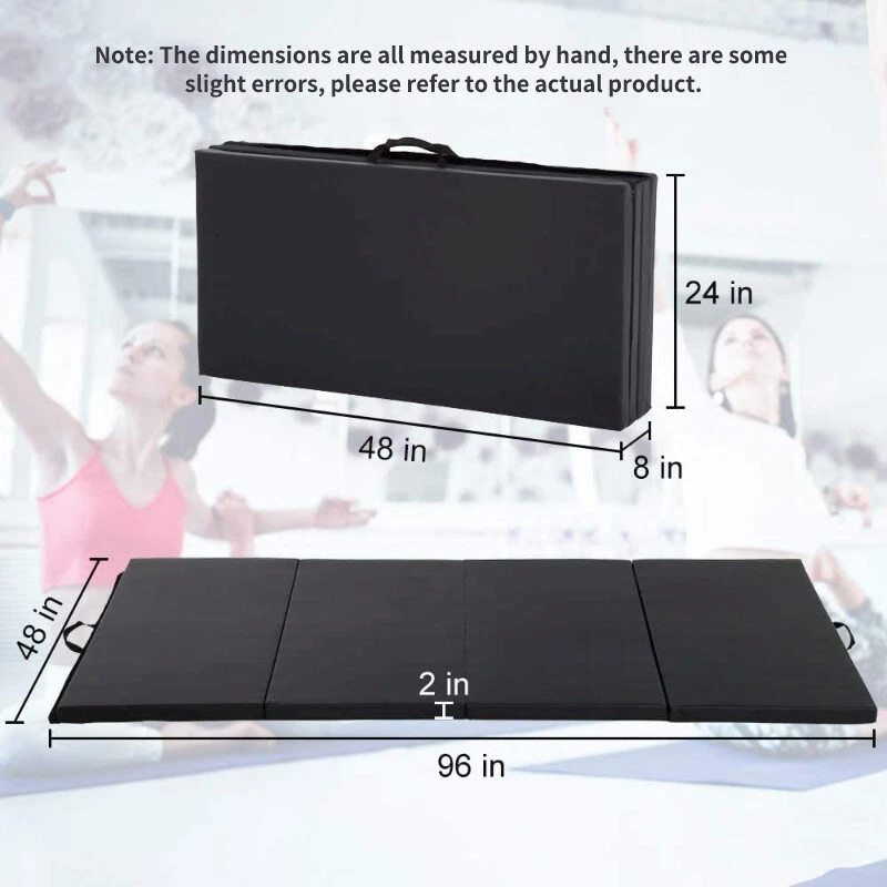 4'x8'x2" Gymnastics Mat Exercise Yoga Mat Folding Extra Thick w/Carrying Handles Gymnastics Mat Gymnastics is an ideal indoor fitness exercise, when you need a durable, lightweight, long foldable gymnastics mat to show your gymnastic skills. Yoga Mat The right yoga mat is an important partner for yoga enthusiasts, and this quadruple-fold foldable mat is spacious and soft, very suitable for doing yoga exercises indoors and outdoors. Workout Mat Fitness people need a suitable tool, comfortable fitness mat for home is an ideal fitness equipment, very suitable for doing calorie-burning aerobic exercise. Tumbling Mat Flat and beautiful gymnastics mat is very suitable for stretching exercise exercise, busy day you can use this mat to do a simple stretching exercise to relieve your fatigue. Product Description About this item 🍄【 Extra Long Gym Mat】Our four-fold gymnastics mat is very different from others, the size is much larger. It is one fold more than the tri-fold mat. And to be longer than other 3'x6' gymnastics mats, our gymnastics mat is 8ft long and 4ft wide. Longer gymnastics mats are suitable for more people of different heights. 🍄 【High Density EPE Foam】2 inch thick gymnastics mat is made of high quality EPE foam and soft PU leather, which provides maximum support for your body during high intensity exercise, and can give you extra comfort at the same time. And the PU material is safe for your body and is completely touchable. 🍄 【No Installation Required】The fitness mat can be deployed and used directly when you take it out from inside the package. The yoga mat is made of commercial grade material and each block is very durable. The fine stitching around the edges does not fray easily. Great for prolonged exercise use. 🍄 【Easy to Storage】This entire Fitness Exercise Mat consists of four panels, four-fold design, compact, gymnastics mat can be easily folded into a small square for easy storage, suitable for compact spaces. Velcro on both sides of the gymnastics mat to put more mats together. Great kids' tumbling mat for home gym. 🍄 【Easy to Carry】The folding gymnastics mat is only 14 pounds and includes a sturdy carrying case with a convenient carrying handle, you can carry the gym mat anywhere you want to go, the sports fitness mat is suitable for indoor sports, outdoor sports, camping dinners. This is a versatile gymnastics tumbling mat. 🍄 【Make Cleaning Pleasure】The surface of the 2" thick gymnastics mat is waterproof, so you can clean tumbling mats directly with water or wipe it with a damp cloth to save the time of cleaning the mat. In addition, the waterproof PVC surface is easy to maintain on a daily basis. 🍄 【Suitable for Many Sports】Foldable gymnastics mat is ideal for a variety of sports. This folding gymnastics mat is perfect for you to use at home for activities such as yoga, exercise programs, tumbling, martial arts, gymnastics and day care. You can also take it to the gym and do warm-up exercises before other exercises. Features: - High quality and durable gymnastic mat. - Durable toxin free Pu leather with non-slip, wipe clean, water and sweat resistant. - Thickened PU leather cover is toxic-free, non-slip, waterproof, crack-resistant, which is healthy and safe for your family and easier to clean. - 2 inches of thick high-density EPE foam provides soft experience. - Four-fold design for easy storage and transportation. - Velcro to attach to other mats and folds with handles to carry. - Double easy to carry handles, making it very easy to move and carry. - Designed for schools, clubs, camps, teams or individuals, etc. - Perfect package: The folding exercise mat package include all the accessories , High-strength packaging protects all accessories from damage. Specifications: - Color: Black - Material: PU Leather & High-Density EPE Foam - Dimension: 4'x8'x2" - Thickness: 2" - Occasion: Schools, clubs, camps, teams or individuals, etc. - Package included: 1 x Folding gymnastic mat 1 x Instructions Payment Delivery details Return and Replacement: Feedback Contact us Payment We accept payment by Paypal only We only ship item to your PayPal verified address. Payment must be made within 7 Days from the date of purchase. Delivery details Fast shipping from Duluth, United States. It will take about 3-7 business days for delivery . Usually , US warehouse will ship the package within 1-3 business days after we receive your payment.(Sat. & Sun. & Public holiday excluded.) Orders placed on Friday night and weekend will be shipped on next Monday. Return and Replacement: If the package return to us because of address wrong ,Buyers are responsible for re-shipping cost. 1. If you are not satisfied when you receive your item, please return it within 14 days for money back. if the item have problems ,we Accept Return in 30 days for refund or replacement, goods in resalable condition.and we Offer 3 months for repair warranty. Buyers are responsible for return shipping cost with proper packaging and we pay the cost for reshipping.Please add a piece of paper written your eBay ID with the returned item that will help us process the replacement/refund accordingly. 2. Contact for address and reference number before return(note: unannounced parcel may be returned to wrong address, seller will not be responsible for this. 3. No factory warranty for the man-made damage. Feedback Please leave five stars positive feedback positive comment and Five-Stars. Contact us if you have any question, Give us a chance to serve you, negative feedback could not solve anything, communication Please! (NO) Three stars is LOW star, NO 1,2,3 stars PLEASE! (YES) Please give us Five-star! Have Question or Problem?? Step 1: Contact seller Step 2: Select the 1st topic: I have a question about using my item or I want to send the seller a message. NO others please! Select a topic: I have a question about using my item or I want to send the seller a message(0) (YES) YES, THIS