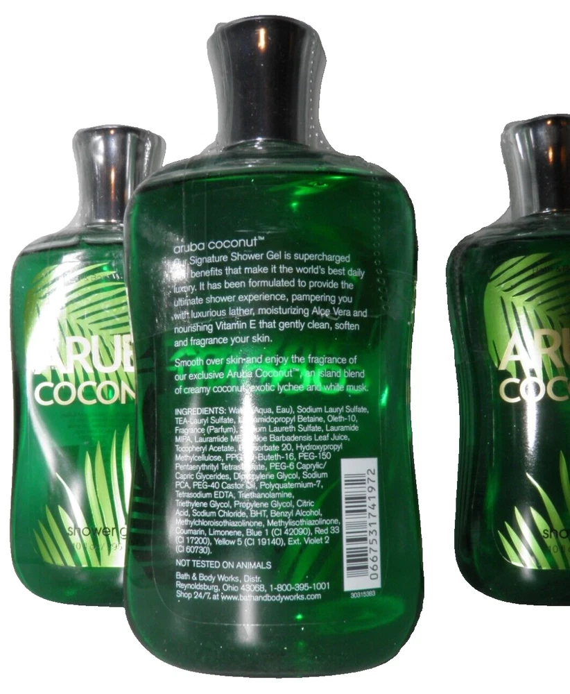 5 Bath & Body Works ARUBA COCONUT Shower Gel BODY WASH SEALED This listing is NOT sponsored by, affiliated with, or representative of the mentioned brand(s), trade name(s), or trademark(s) and does not claim any ownership of such. All trademarks or brands mentioned in this listing are registered trademarks of their original owners who reserve all their rights and ownership. The use or mention of any trade name, product name, or trademark is necessary and for identification and is for reference purposes only. Mailing Address - We will ONLY ship to the address on file with eBay. Before making a purchase, please ensure that your address is correct. We may otherwise cancel the sale. Handling Time - Our handling time is set to THREE BUSINESS DAYS. We ship packages Monday - Friday, except on holidays.