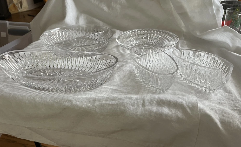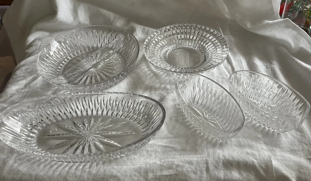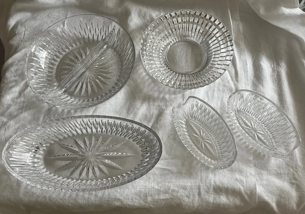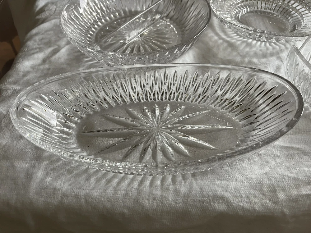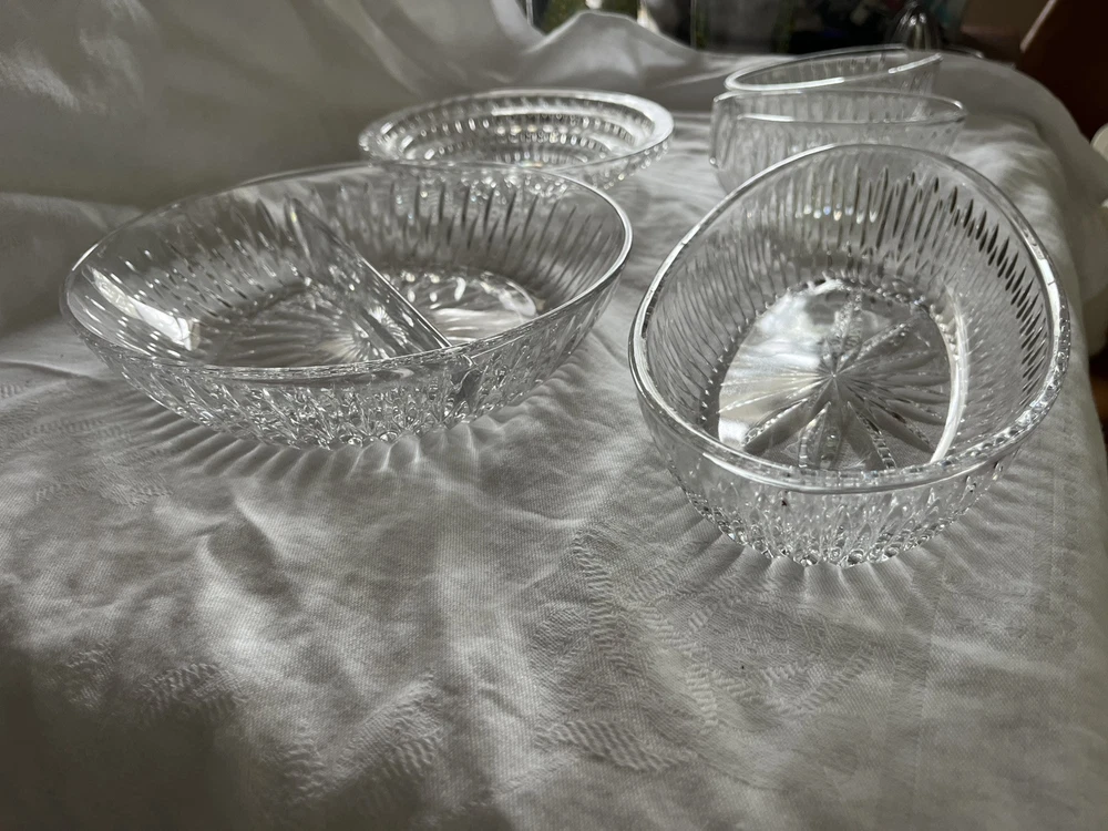 Crystal Glass Serving Dishes 2 Spoon Rests 2 Bowls, 1 Divided Cut Crystal Nice