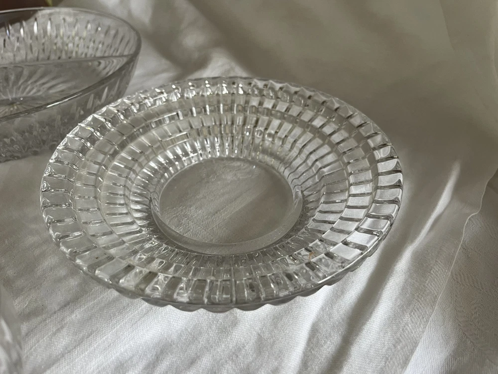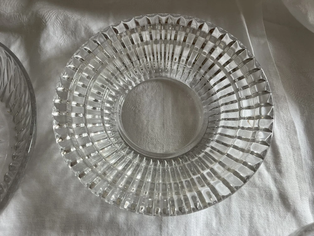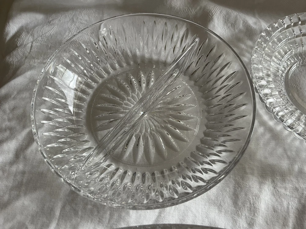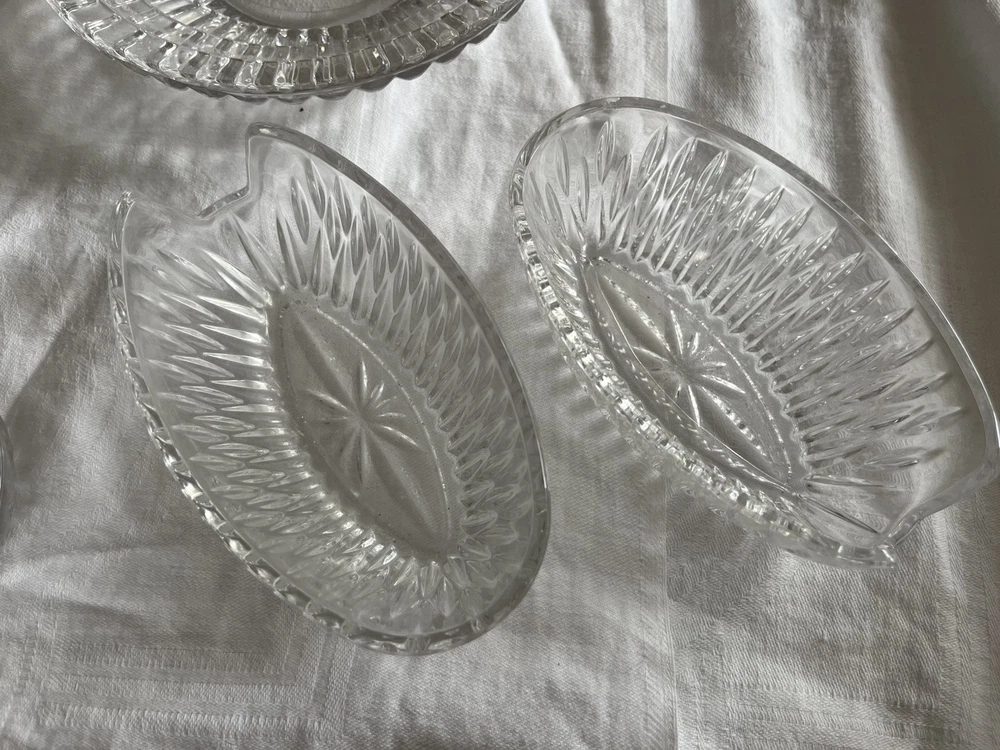 Crystal Glass Serving Dishes 2 Spoon Rests 2 Bowls, 1 Divided Cut Crystal Nice