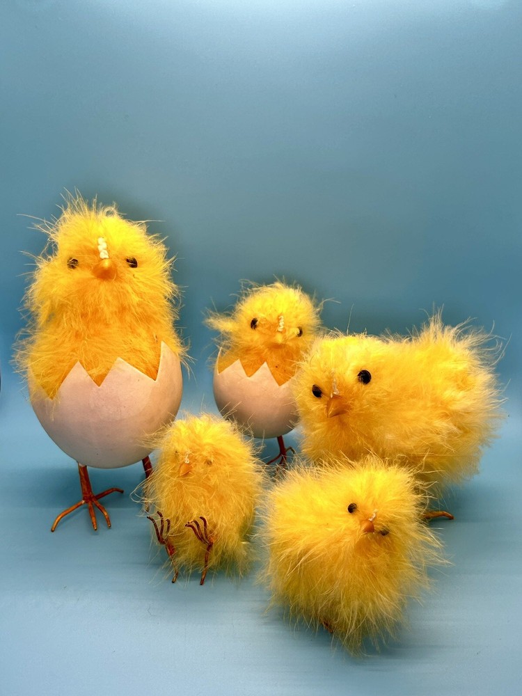 Tallest chick measures roughly 7” tall. This is a preowned set which may have various cosmetic blemishes, including signs of wear, dust, markings, and other imperfections due to its previous use, age, movement, and storage. It should also be noted that color may vary from photos due to camera flash and/or computer monitor color variations. If condition concerns you, please review the images closely before purchasing, zooming in as necessary, as they should be considered part of the description. Questions are always welcomed! 9/38/8/24