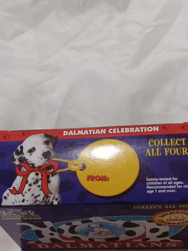 Step into the magical world of Disney's 101 Dalmatians with this complete set of 5 snow dome figurines, a memorable collectible from McDonald's 1996 Happy Meal series. Each intricately designed piece captures the playful spirit of the beloved character family, beautifully preserved within the clarity of snow globes that are sure to charm collectors and youngsters alike. The set is ideal for fans of all ages, from the youthful exuberance of 3-4 year olds to the nostalgic appreciation of 8-11 year olds and beyond. .