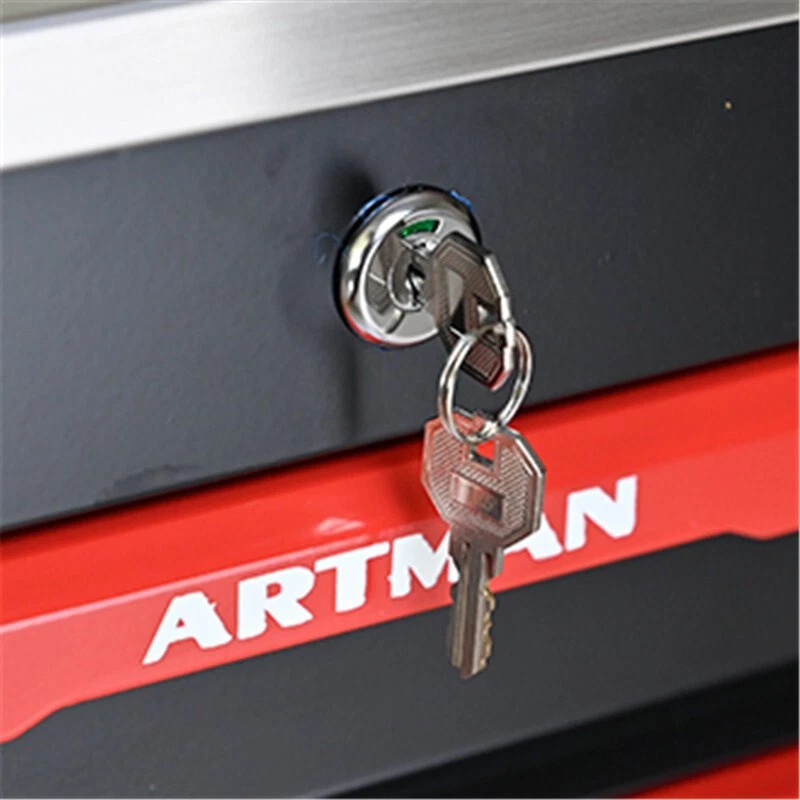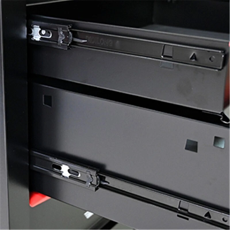 Features and Details: 5 Drawers mutifunctional tool cart with wheels. The tool box is also lockable and can be used as a removable, attachable and mobile case The opening and closing of the drawers of the tool cabinet is very gentle thanks to the ball-bearing drawers The robust and powder-coated steel construction is used for high wear resistance. This assembly trolley has 4 steering wheels, 2 of which with parking brakes, so you can move the trolley freely in the garage, but also stop in one place This is a set of cabinets, can use a round hook at the bottom of the table to connect another tool car, thus forming a combination. Specification: Color: Black+Red Material:Cold Rolled Steel Surface Finish :Powder Coating Casters:4" Casters (2PCS with brake and 2PCS without brake) Product Size (with wheels and countertops):22.28*13.58*30.71INCH Product Size (without wheels and countertops):20.63*12.99*25.16INCH Weight (lbs.): 52.03
