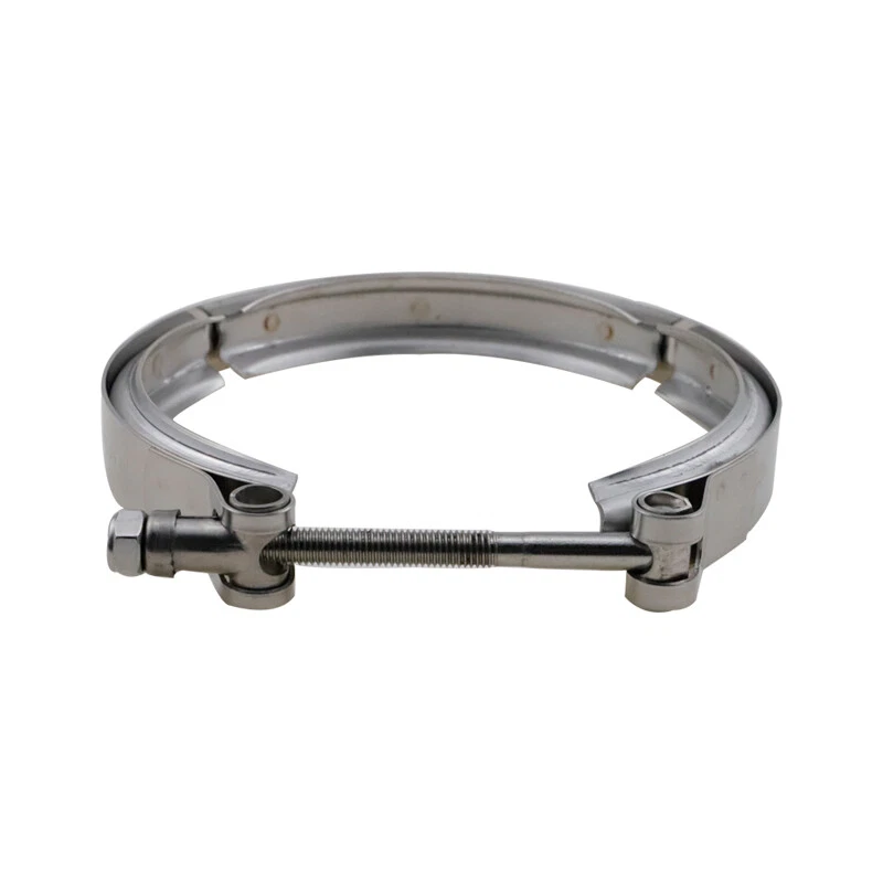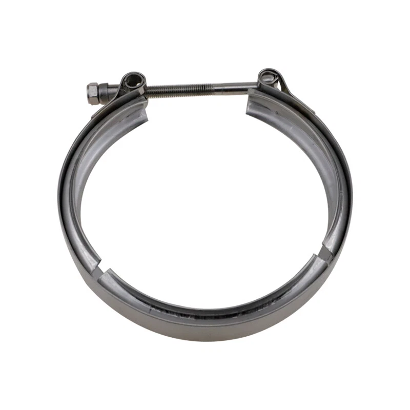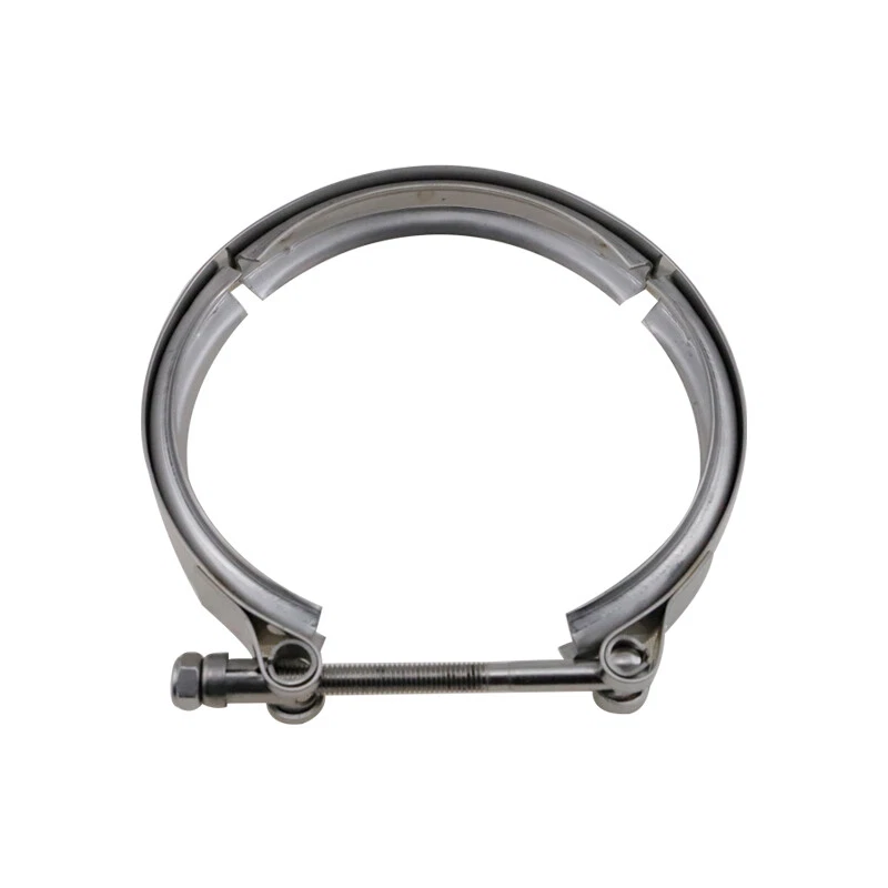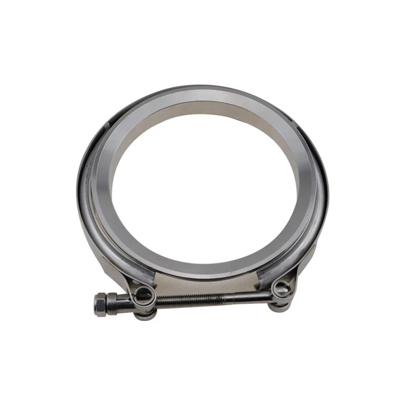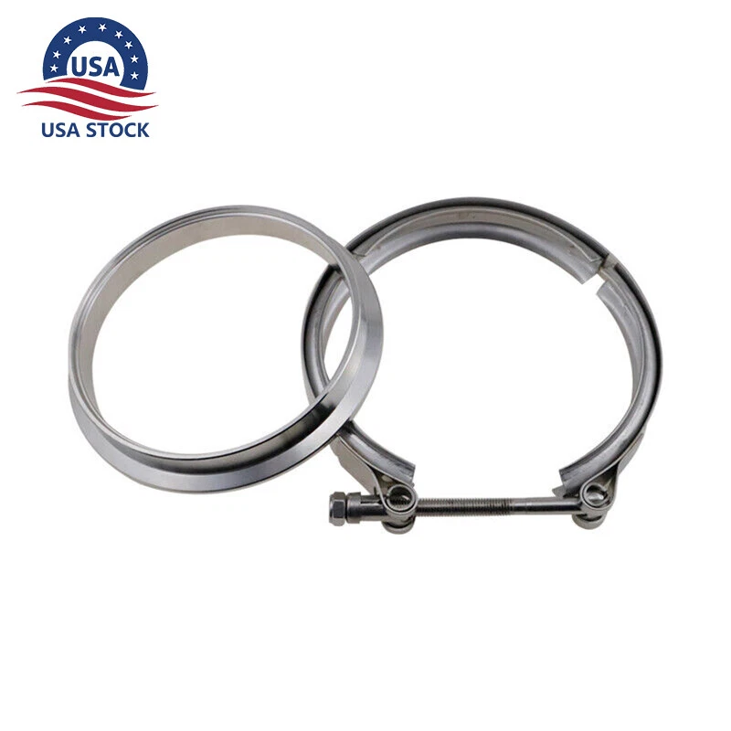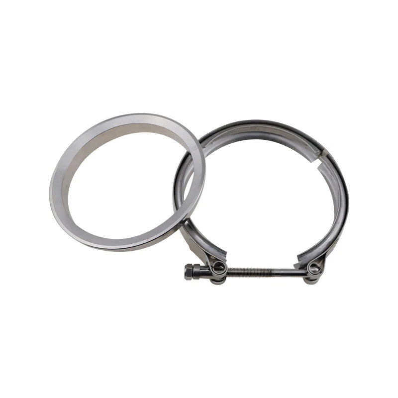 5" Exhaust Downpipe Flange & Clamp for *T6* S400 S475 S480 S400SXE Application : 5" Marmon downpipe flange and clamp for the S400 Series (S SX SX-E) Borg Warner turbo with the Big Divided T6 Turbine Housing! Fab Pros V-band Flange and Clamp set for the Turbine Exit (Downpipe side) on all the DIVIDED T6 flanged (Larger Frame) 400 Series Turbos, S, SX, and SX-E with the beveled face. This Marmon Style flange is compatible with these BW (Borg Warner) Turbo models including: S400 S400SXE S475 S480 S463 S467 SX-E SX. Many others in the S400 Series. Note: Not for the Smaller "T4" Housing on these turbos that has the flat face This one DOES NOT FIT the S200 and S300 housings. Features : 1. This 304 Grade STAINLESS STEEL billet machined flange has a 5" OD to mate to a 5" tube and weld. 2. The FLANGE OD (Outer Diameter) of the flange on the housing needs to be 5.75". 3. Comes with a matching heavy duty clamp.