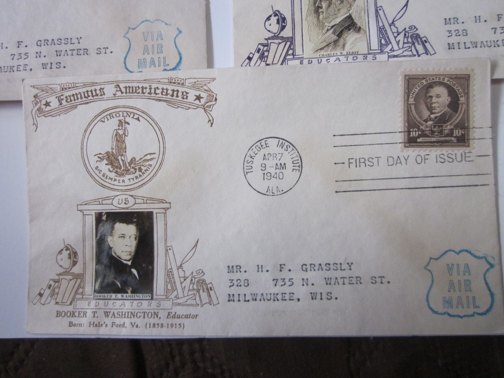 This set of five First Day Covers (FDCs) features American educators and historical figures, each with a unique cachet showcasing a photograph of the esteemed person. The stamps were issued between 1931-1940 and were sent using airmail. The FDCs are of used quality and are ungraded, but their historical significance is undeniable. These stamps were sent from the United States and feature a first-day cancellation. The certification of the stamps is uncertified. Don't miss your chance to own a piece of American history!