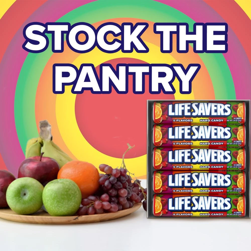 The classic 5 Flavors that have stood the test of time: cherry, raspberry, watermelon, orange, and pineapple Product Note: Exposure to heat or sunlight may lead to melting/damage of product. Hence customers are expected to be available during the product delivery Hard candies that are a hole lot of fun Great for lunches, snacks, or to share with friends The classic American candy, originally designed to resemble a life preserver Product Description It's important to take a minute to appreciate the simple joys in life. One pleasure that's easy to always have handy is Life Savers Hard Candy. A classic American candy since 1912, the flavors of Life Savers Hard Candy have stood the test of time. Featuring sugar-free versions of the beloved cherry, raspberry, watermelon, orange, and pineapple fruit flavors of 5 Flavors, it doesn't take much for these trusted tastes to draw an easy smile. So pause the hectic world for just a moment and savor the simple pleasure of Life Savers Hard Candy. ;WM. Wrigley Jr. Company, Chicago, IL 60642. Manufacturer Contact Information WM. Wrigley Jr. Company, Chicago, IL 60642