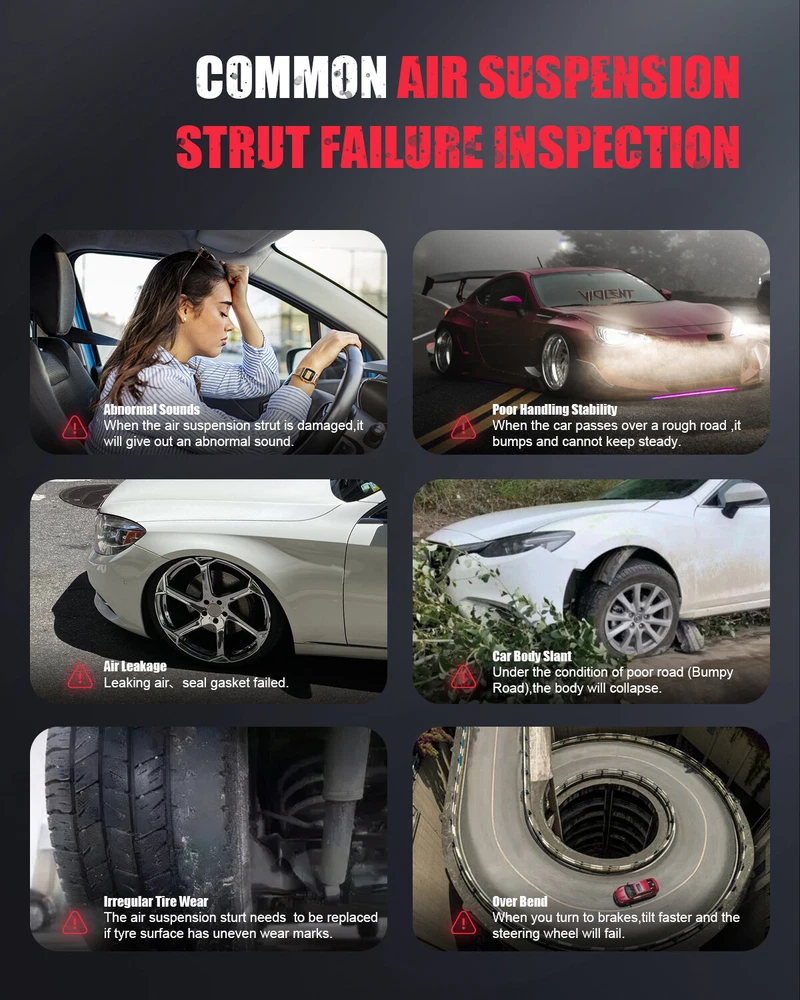 *OEM Part Number: Front Air Suspension Strut: 68029903,68029903AC,68029903AD,68029903AE,68029903AF 68029902,68029902AC,68029902AD,68029902AE,68029902AH Rear Air Suspension Spring:68029911AB,68029912AC,68029912AD,68029912AE 68258355AA,68258355AB,68258355AC Air Suspension Compressor Pump:68204387, 68232648AA , 68204730AC , 68041137AF , 68204730AB , 68041137AG , 4877128AF, 68204387AA, 68204730AG *Item Specifications: 5* Front Rear Air Suspension Shock Compressor For Jeep Grand Cherokee WK2 ZJ WJ *OEM Part Number: Front Air Suspension Strut: 68029903,68029903AC,68029903AD,68029903AE,68029903AF 68029902,68029902AC,68029902AD,68029902AE,68029902AH Rear Air Suspension Spring: 68029911AB,68029912AC,68029912AD,68029912AE 68258355AA,68258355AB,68258355AC Air Suspension Compressor Pump: 68204387, 68232648AA , 68204730AC , 68041137AF , 68204730AB , 68041137AG , 4877128AF, 68204387AA, 68204730AG *Item Specifications: Key Words: 5 PCS Front Air Suspension Shock Strut & Rear Air Suspension Spring & Air Suspension Compressor Pump For Jeep Grand Cherokee WK2 2011-2016 Quadra-Trac Package Includes: 2 PCS Front Left & Right Air Suspension Strut 2 PCS Rear Left & Right Air Suspension Spring 1PC Air Suspension Compressor Pump Notes : Please double confirm the compatibility as well as the OEM number before purchasing. Instruction is not included. Professional installation is recommended. *Compatibility Chart: 1, You can distinguish specific model of an automobile by VIN(Vehicle Identification Number). 2, VIN(Vehicle Identification Number) consists of total 17 English letters and arabic digits. 3, VIN does not include the letters I (i), O (o), and Q (q) (to avoid confusion with numerals 1 and 0). Jeep Grand Cherokee 75th Anniversary Sport Utility 4-Door 3.6L 2016 Laredo E Sport Utility 4-Door 3.6L 2012-2013 Laredo Sport Utility 4-Door 3.6L 2011-2013 Laredo Sport Utility 4-Door 5.7L 2011-2013 Laredo X Sport Utility 4-Door 3.6L 2012-2013 Laredo X Sport Utility 4-Door 5.7L 2012-2013 Limited Premium Sport Utility 4-Door 5.7L 2011-2013 Limited Sport Utility 4-Door 3.0L 2014-2016 Limited Sport Utility 4-Door 3.6L 2011-2016 Limited Sport Utility 4-Door 5.7L 2011-2016 Overland Sport Utility 4-Door 3.0L 2014-2016 Overland Sport Utility 4-Door 3.6L 2011-2016 Overland Sport Utility 4-Door 5.7L 2011-2016 Overland Summit Sport Utility 4-Door 3.6L 2012 Overland Summit Sport Utility 4-Door 5.7L 2012 SRT Sport Utility 4-Door 6.4L 2013-2016 SRT8 Sport Utility 4-Door 6.4L 2012-2015 Summit Sport Utility 4-Door 3.0L 2014-2016 Summit Sport Utility 4-Door 3.6L 2014-2016 Summit Sport Utility 4-Door 5.7L 2014-2016 * Generation & Evolution: Jeep Grand Cherokee ZJ First generation (1993-1998) WJ Second generation (1999-2004) WK Third generation (2005-2010) WK2 Fourth generation (2011-present) * Frequently Asked Questions : How to prevent the damage of air springs/How to extend the service life of air springs/struts etc.? An air strut with separable air springs If your vehicle offers a separable air suspension (Audi Allroad A6 C5, Mercedes-Benz W164, BMW X5, etc.), you should regularly (about once a week) lift the car to the maximum position, and remove dirt with a high-pressure cleaner (keep the cleaner at a distance to the air spring about 30 cm/12 inches, otherwise water pressure can damage the air spring). The highest position may vary depending on your model and regulation options. Therefore, please test this by trying the different modes available to you (Sport, comfort, dynamic, off-road) and choose the one that sets your vehicle to the highest position. The dirt will most likely be found under the fold of the pneumatic chambers. If you find a frozen layer of bitumen on the piston guide (the part of a strut on which the air spring is installed), it is recommended to clean it as well. Whenever possible, avoid riding on fresh asphalt, as fresh bitumen mixed with sand immediately results in a build-up of abrasives on the piston and in turn contributes to accelerated wear and tear of the air spring. A complete air suspension shock Many cars such as Mercedes W220 or W211 are set up with a complete air strut - shock absorber and air spring visually form a complete spare part. In many cases, you can easily recognize these by the metal cups with which the air spring is tightly mounted. To best avoid any damage, we highly recommend to regularly check the condition of the dust protection seals of the air strut. What is the difference between an air spring and an air strut? The air spring is a part of the air strut. Some vehicles (e.g. Mercedes ML) allow you to change the air spring separately. At our online shop you have the opportunity to buy either the whole air strut or only the air spring. For some type of vehicles it is not possible to change the air spring separately. In this case the whole air strut should be replaced. Which side of my car is the Right and Left? The right and left sides of an automobile are determined as if sitting in the car facing forward. Thus, the left side is on the left when sitting in the car facing forward, and the right side is on the right. For American cars, the driver’s side is on the left, and the passenger sits to the right of the driver. For cars in Japan, Britain, Ireland, the Bahamas and some other former British colonies -- where they drive on the left side of the road -- the passenger sits on the left side, and the driver (along with all the driving controls) is on the right. *Platform Drive Layout : Front Engine-Four Wheel Drive Layout Item Specifics Placement on Vehicle Left Right Front Rear Type Air Suspension Shock Fitment Type Direct Replacement Package Box Single Weight(LB) 64.064 Maximum Operating Pressure (psi) 195 Minimum Operating Pressure (psi) 90 Upper Mount Type Stud Lower Mount Type U-Bracket Included Hardware None Drive Layout Front Engine 4WD Platform WK2 Custom Bundle Yes Material Iron Aluminium Alloy Rubber Quantity 5PCS Manufacturer Warranty 1 Year OE Spec or Performance/Custo