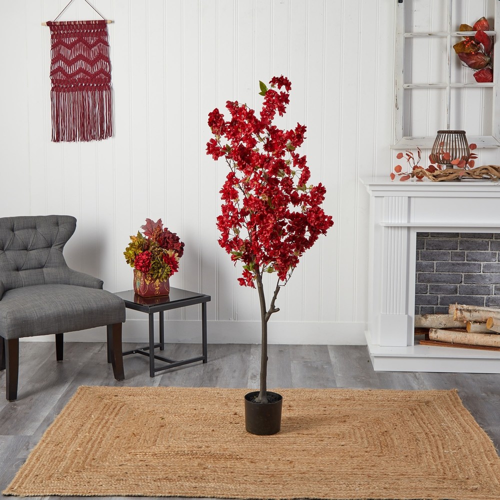 Enjoy the wonders of the majestic spring awakening with this Artificial Cherry Blossom Tree. Incredibly lifelike pink cherry blossom flowers adorn a slim, brown trunk in a rhythmic melody of pink foliage for a full look that will instantly transform your home into the best of Japan. The pink flowers have shades of white and are accented by green leaves for a feminine touch that softens spaces. Standing 5' from a nursery planter (included in height), curate in tight areas that want to feel pretty in pink. Perfect for bedrooms, bathrooms, awkward corners, or kitchen nooks. Free Shipping Over $49.99* Details 5' Cherry Blossom Artificial Tree Product Description: Enjoy the wonders of the majestic spring awakening with this Artificial Cherry Blossom Tree. Incredibly lifelike pink cherry blossom flowers adorn a slim, brown trunk in a rhythmic melody of pink foliage for a full look that will instantly transform your home into the best of Japan. The pink flowers have shades of white and are accented by green leaves for a feminine touch that softens spaces. Standing 5' from a nursery planter (included in height), curate in tight areas that want to feel pretty in pink. Perfect for bedrooms, bathrooms, awkward corners, or kitchen nooks.